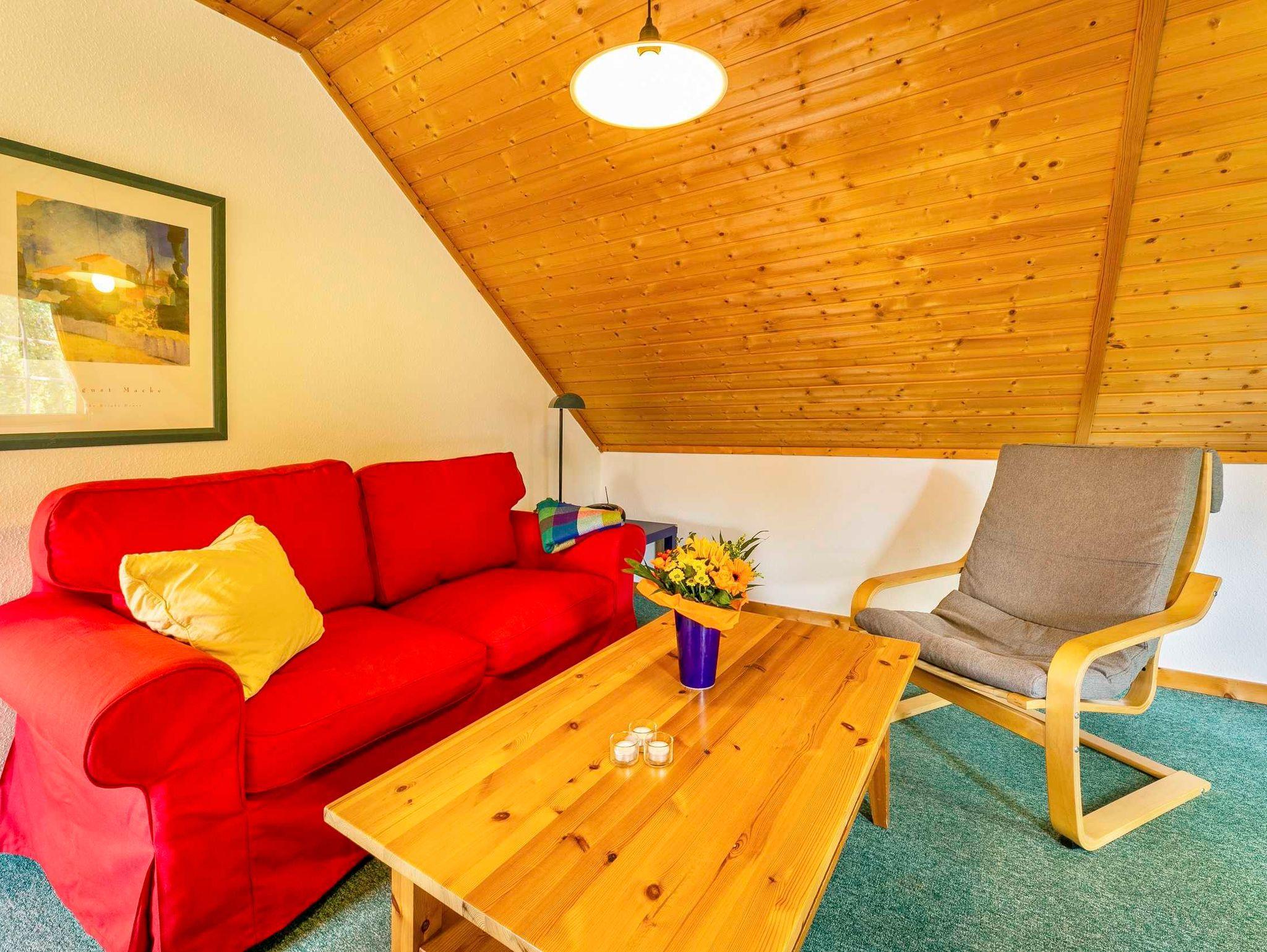 Bei der Ferienwohnung Typ Lerche handelt es sich um eine Ferienwohnung im Obergeschoss eines Ferienhauses mit einer Größe von 50 qm, für 4 Personen.