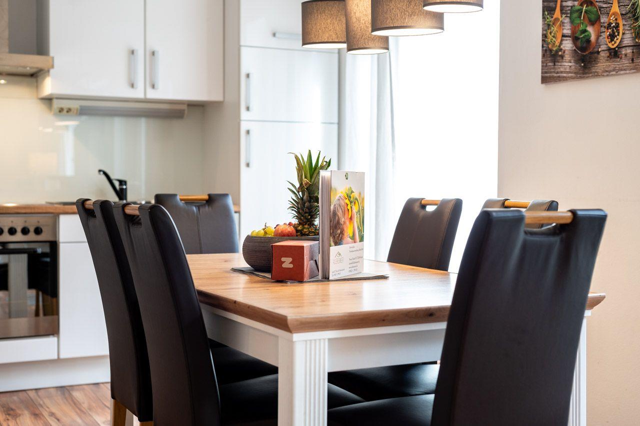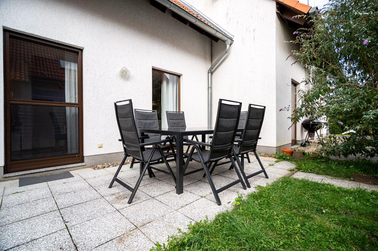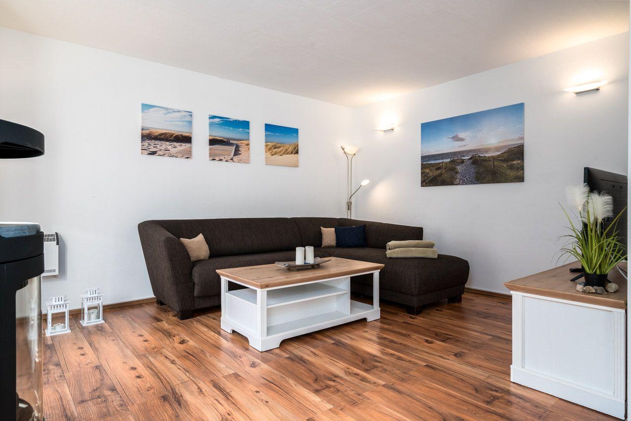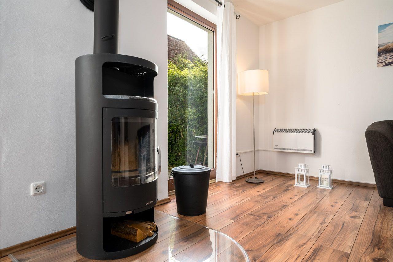 Das Ferienhaus/ Reihenhaus mit Süd- Terrasse, kleinem Garten, einem herrlichen Blick zum Hafen und nur 50 m vom Wasser entfernt, bietet auf 2 Ebenen und 4 Zimmern viel Platz zum Urlauben. Im gemütlich eingerichteten offenen Wohn- und Essbereich mit Kamin befinden sich ein Sofa, sowie Kabel-TV (SmartTV). Die offene Küche ist komplett ausgestattet mit Cerankochfeld, Backofen, Geschirrspüler, Kühlschrank mit TK-Fach, Kaffeemaschine, Mikrowelle, Toaster und Wasserkocher und alles was nötig ist. Von den 3 Schlafzimmern, befinden sich 2 im Obergeschoss (3 SZ mit Doppelbett), das Badezimmer mit bodengleicher Dusche im Erdgeschoss. Die Gartenmöbel und 1 Grill stehen zur Verfügung. 2 PKW Stellplätze befinden sich am Haus. Fliegengitter und Fußbodenheizung gehören ebenfalls zur Ausstattung. Die Stromkosten werden nach Verbrauch abgerechnet.