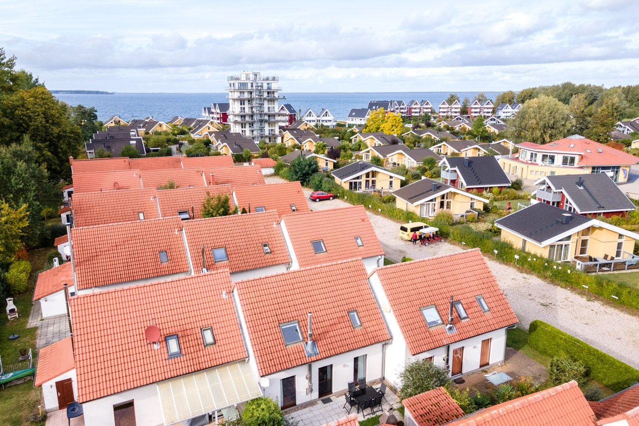 Gemütliches Ferienhaus/ Reihenhaus mit Kamin für 6 Pers., 3 SZ, Süd- Terrasse, kleiner Garten, herrliche Lage zum 100 m entfernten Hafen und Wasser, WLAN, 500 m zum Badestrand im Hafendorf