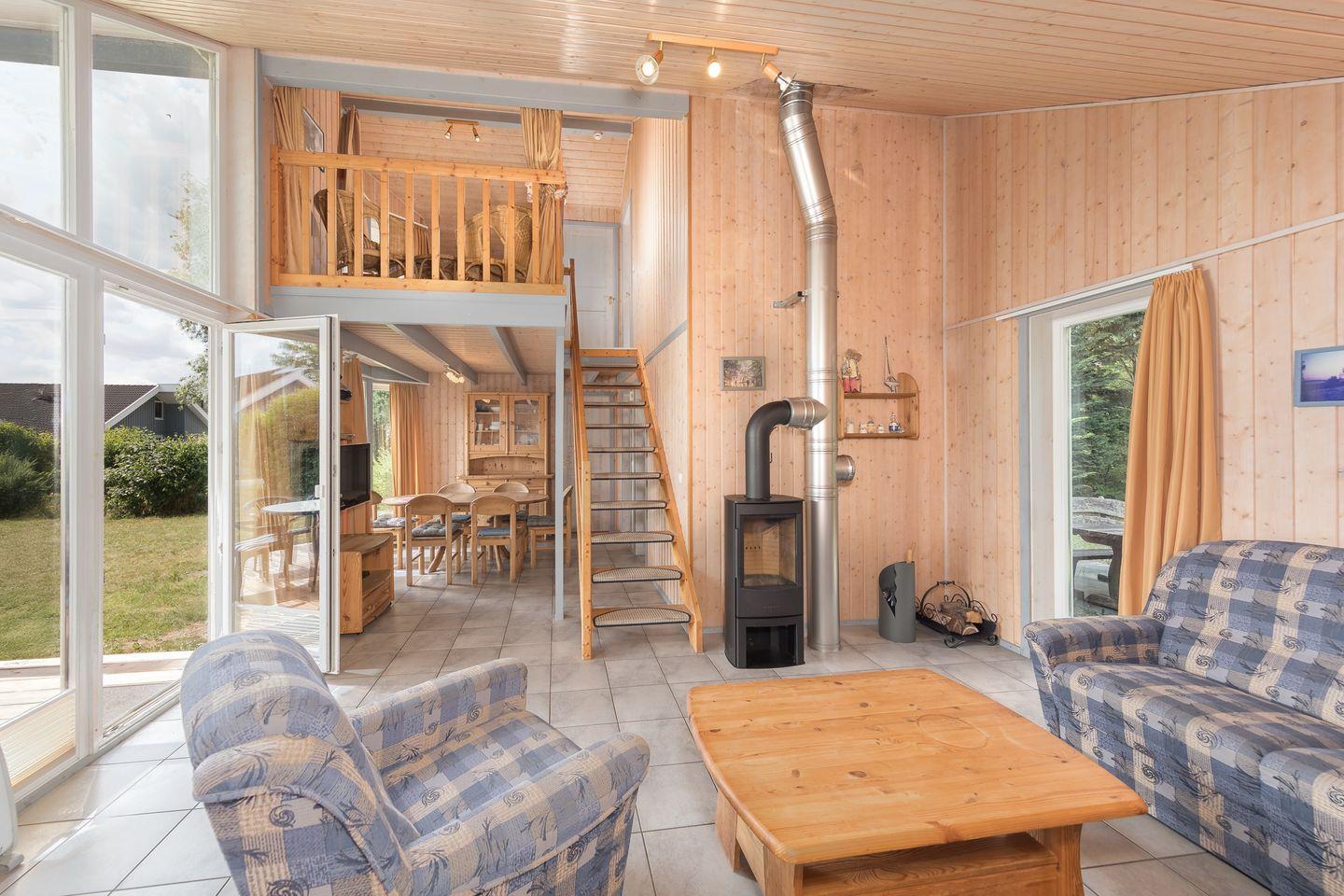 Das Ferienhaus im skandinavischen Stil bietet Platz für bis zu 6 Personen auf 2 Etagen mit 2 Schlafzimmern und offener Schlafgalerie, Wohn-/Essbereich, Einbauküche, Sauna, Terrasse, Abstellraum und Pkw-Stellplatz. Energiekosten werden nach Verbrauch abgerechnet.