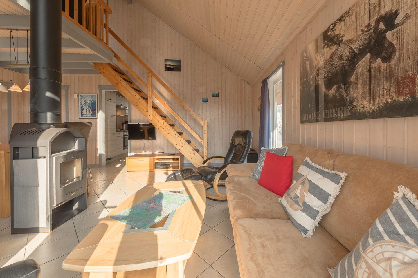 Das Ferienhaus im skandinavischen Stil bietet Platz für bis zu 6 Personen auf 2 Etagen Platz mit 2 Schlafzimmern und offener Schlafgalerie, großen Wohn-/Essbereich, Einbauküche, Sauna und Whirlpool und Pkw-Stellplatz, Terrasse. Energiekosten werden nach Verbrauch abgerechnet.