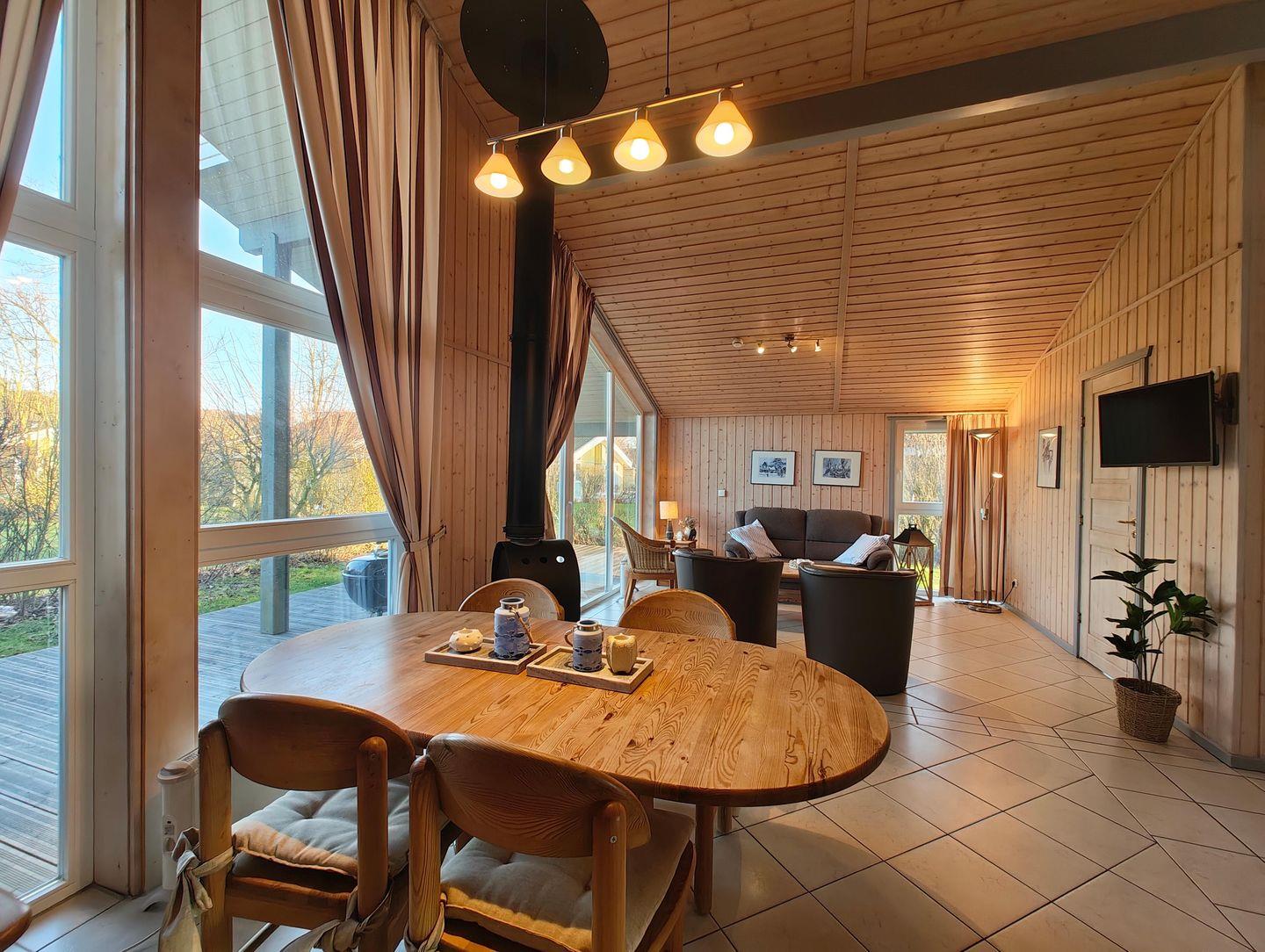 Das Ferienhaus im skandinavischen Stil bietet Platz für bis zu 4 Personen mit 2 Schlafzimmern, Wohn-/Essbereich, Küchenzeile, Sauna und Whirlpool, Terrasse, PKW-Stellplatz. Energiekosten werden nach Verbrauch abgerechnet.