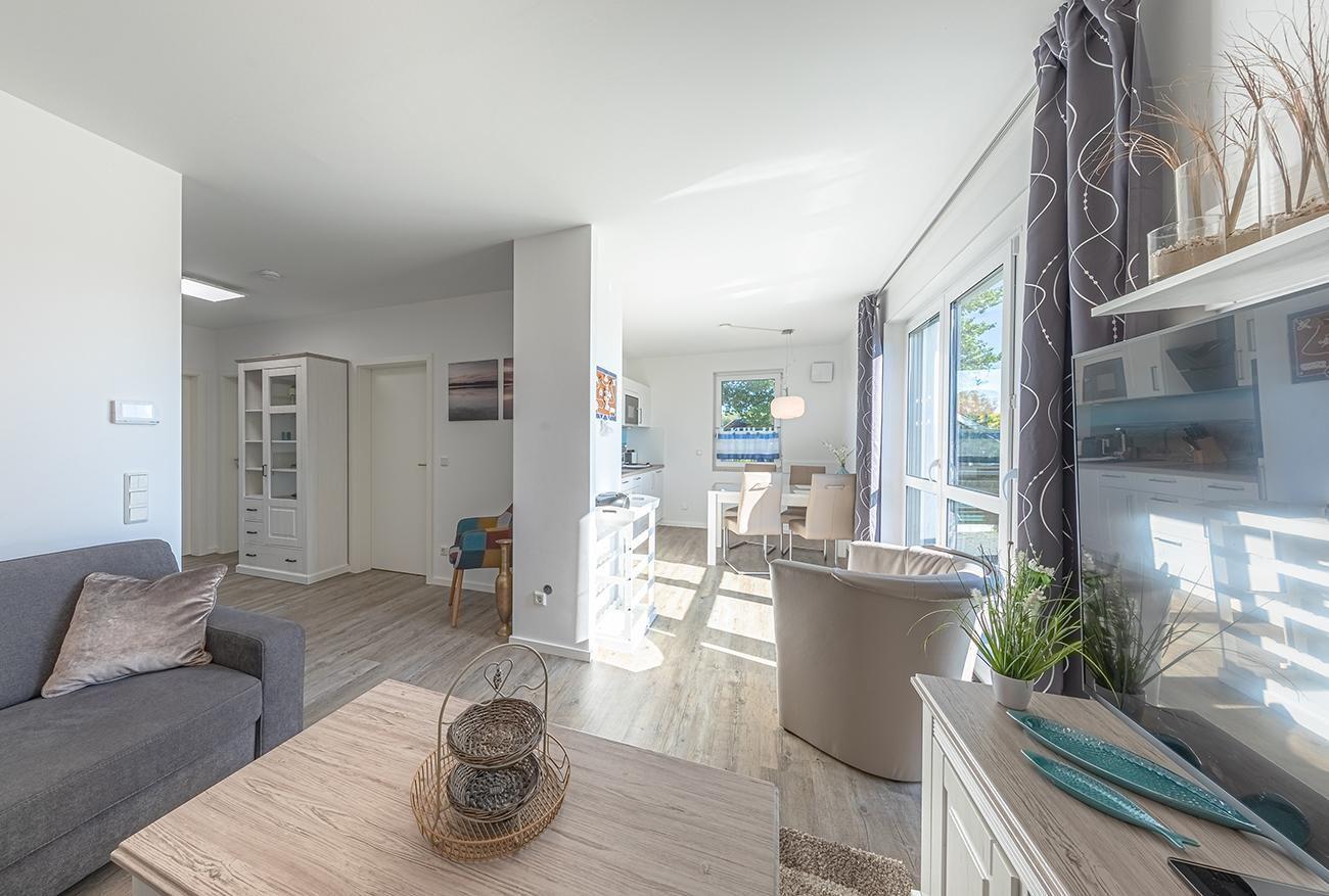 Das Apartment mit Blick auf die Marina bietet Platz für bis zu 4 Personen im o1. Obergeschoss unserer Skipperhäuser mit 2 Schlafzimmern, offenem Wohn-/Essbereich, Einbauküche, Balkon und PKW-Stellplatz. Für den perfekten Start in den Urlaub sind die Betten bei Anreise frisch bezogen und eine Erstausstattung Handtücher liegt bereit. Die Energiekosten sind im Mietpreis inklusive.