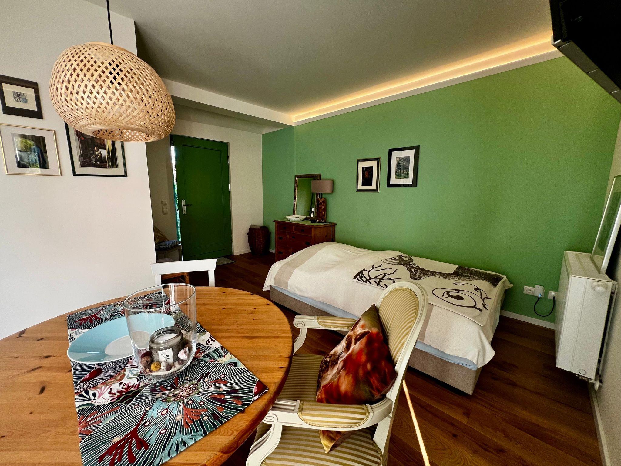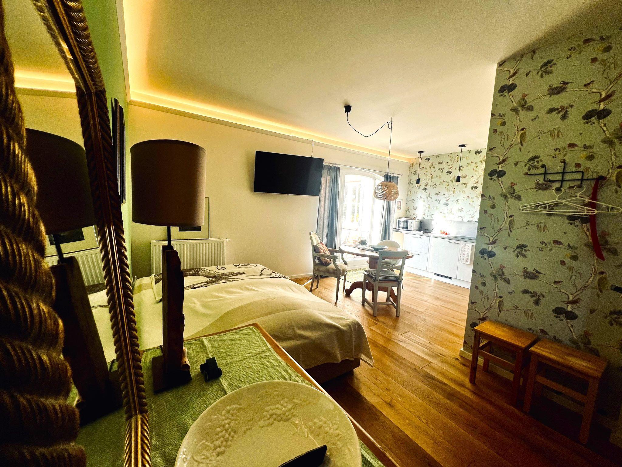Das Apartment besticht durch seine helle, freundliche Gestaltung, einen offenen Wohn- und Schlafbereich sowie eine praktische Küchenzeile. Liebevolle Details, natürliche Materialien und eine moderne Ausstattung schaffen den idealen Rückzugsort nach erlebnisreichen Urlaubstagen.