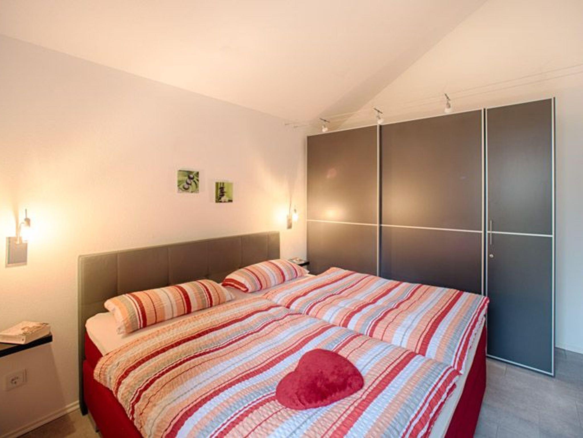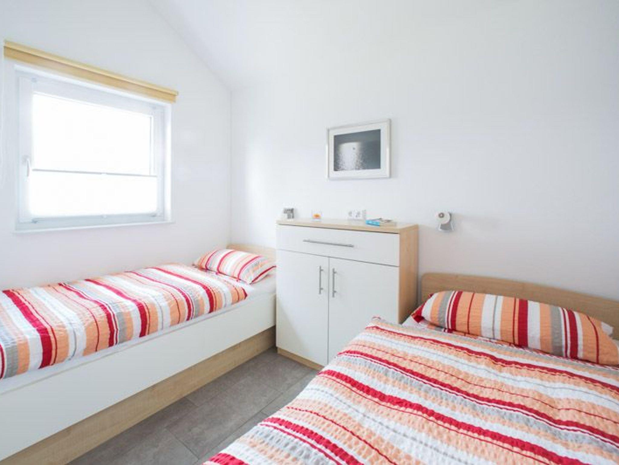 Das Haus verfügt über zwei Schlafzimmer. Der große Schlafraum ist mit einem Doppelbett (Boxspringbett) ausgestattet und verfügt über einen großen Kleiderschrank. Das kleinere Schlafzimmer ist mit zwei Einzelbetten und einer Kommode ausgestattet. Alle Betten verfügen über hochwertige Matratzen und Untergestelle. Eine gute Grundlage für erholsamen Schlaf.