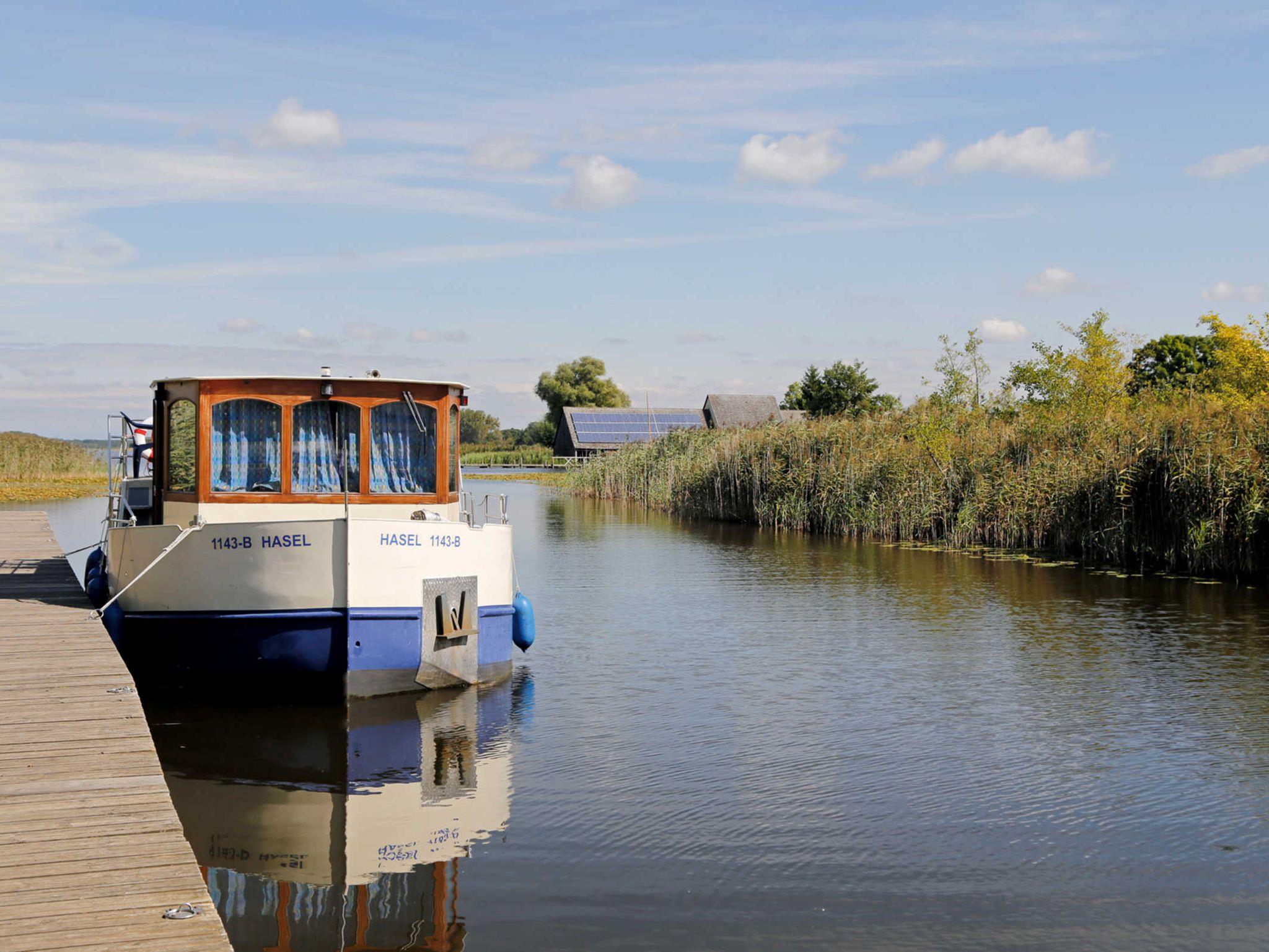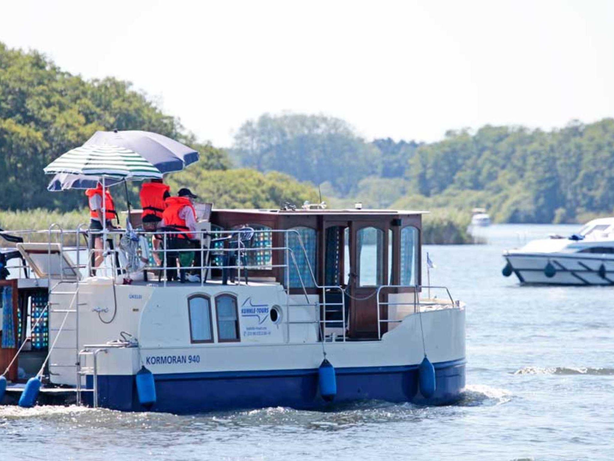 Boats & Yachts at Rechlin Harbor by Kuhnle-Tours, Kormoran 940 - führerscheinfreies Hausboot