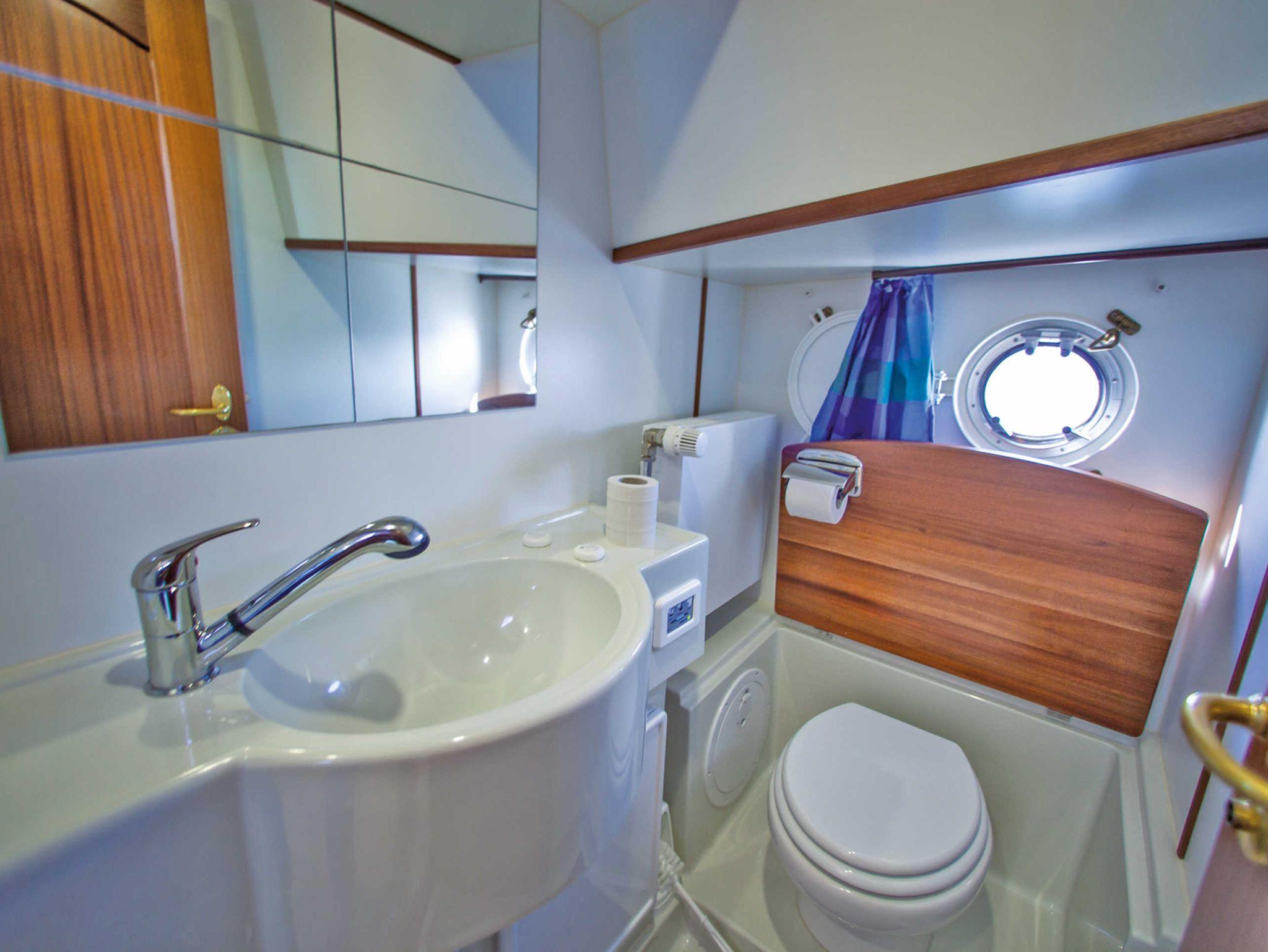 Modernes Hausboot im traditionellen Stil, Salon und Steuerstand mittschiffs erhöht, zweiter Steuerstand auf dem großen Sonnendeck, hydraulisches Bugstrahlruder, große Badeplattform mit Badeleiter und Außendusche (Warm- und Kaltwasser), Anschluss für Landstrom und iPhone, iPad, iPod, MP3-Player oder Laptop, Mückenschutzgitter an den Fenstern der Schlafkabine, Warmwasserheizung, voll ausgestattete Pantry und Salon erhöht im geräumigen Steuerhaus, Anschluss für Landstrom, Wassertank 800 l, Schmutzwassertank 1.000 l*, Dieseltank: 530 l. Heckkabine mit einer Doppel- und einer Einzelkoje, ideal für Paare oder kleine Familien, Nasszelle mittschiffs.