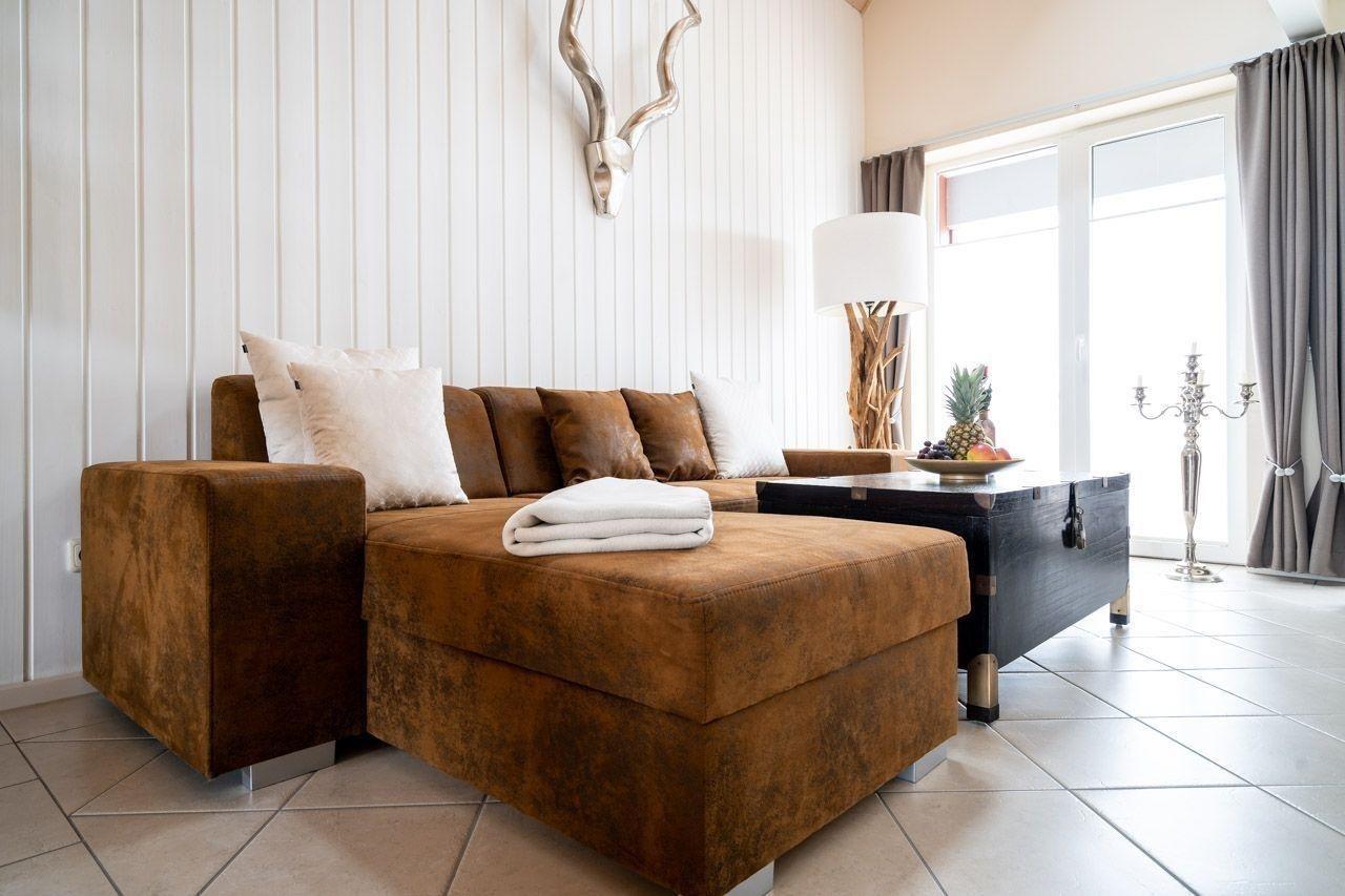 Die Ferienwohnung bietet großzügige Räume und eine moderne Ausstattung, die höchsten Komfort gewährleistet. Sie verfügt über zwei stilvoll eingerichtete Schlafzimmer mit jeweils einem Doppelbett, ideal für erholsame Nächte. In der offenen Küche finden sich zahlreiche Annehmlichkeiten wie ein Geschirrspüler, Elektro-/Gasherd, Backofen, Mikrowelle und Kühlschrank, ergänzt durch eine Kaffeemaschine und einen Toaster. Die Wohnung ist allergikergeeignet und bietet mit zwei Badezimmern, einem davon mit Badewanne, ausreichend Platz für Entspannung. Für Gemütlichkeit sorgt der Kamin oder Kachelofen im Wohnbereich, der auch mit einer HiFi-Anlage und TV ausgestattet ist. Eine Fußbodenheizung, Duschbad mit Haartrockner sowie zahlreiche Handwerkszeuge wie Bügeleisen und Staubsauger erhöhen den Wohnkomfort. Parkmöglichkeiten sind ebenfalls vorhanden. Ideal für Familien oder Paare, die Wert auf Raum und Komfort legen.