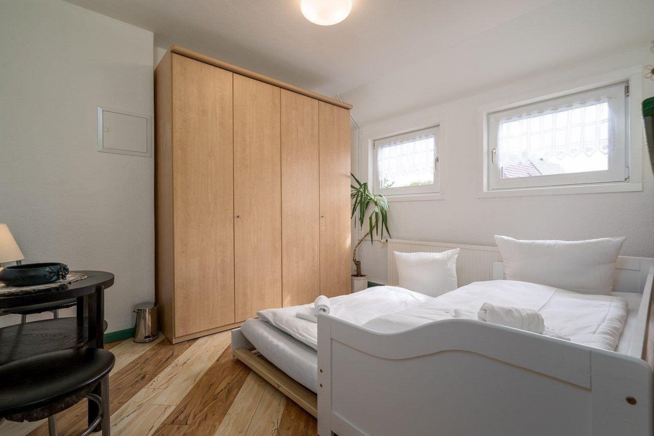 Die Ferienwohnung überzeugt durch großzügige Räumlichkeiten und umfassende Ausstattung. Mit insgesamt vier Schlafzimmern, darunter zwei Doppelbetten, zwei Einzelbetten und zwei Kinderbetten, bietet sie ausreichend Platz für Familien und Gruppen. Das Wohnschlafzimmer mit einer komfortablen Schlafcouch lädt zum Entspannen ein.