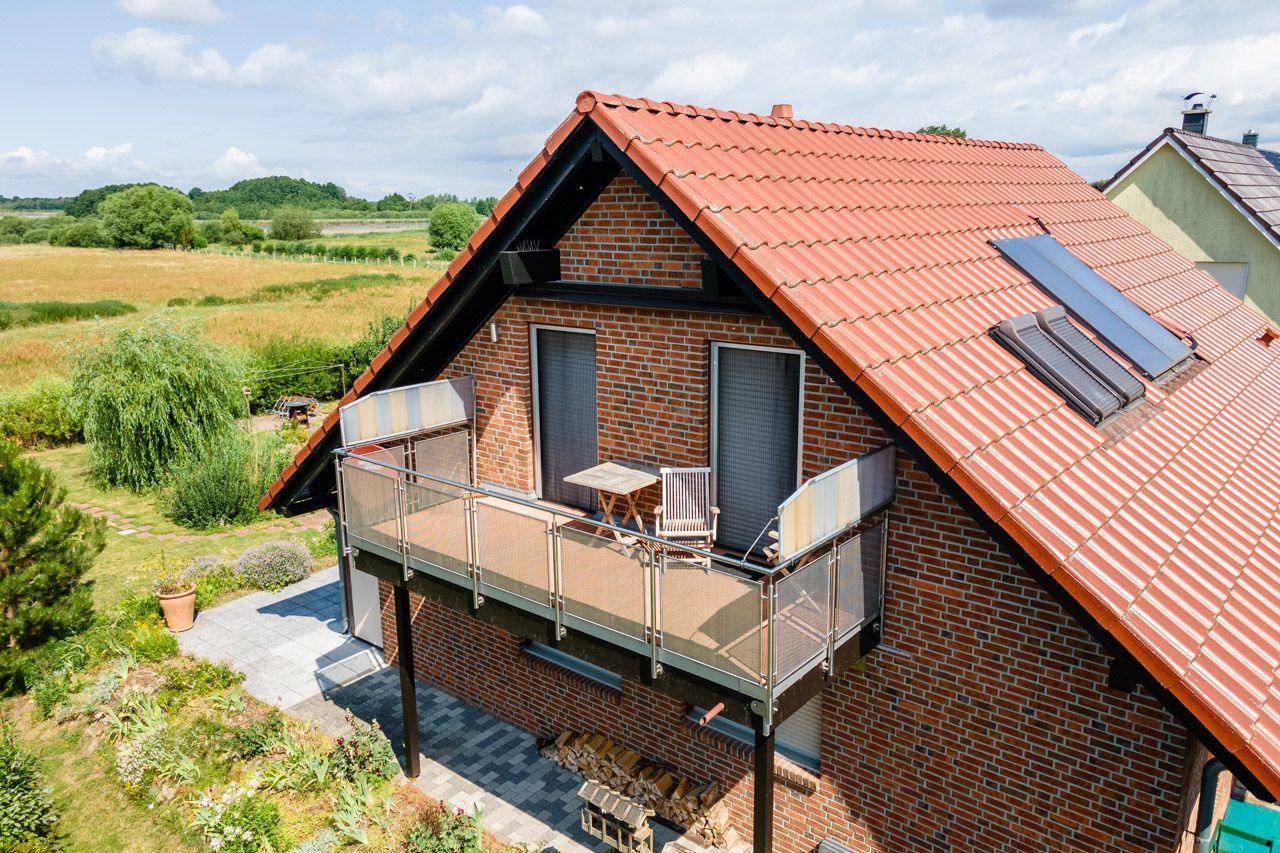 Willkommen in unserem modernen Ferienappartement mit atemberaubendem Müritzblick vom Balkon! Dieses einladende Obergeschoss-Apartment besticht durch seinen durchdachten Grundriss und die geschmackvolle Einrichtung. Der offene Wohn- und Schlafbereich ist mit einem stilvollen Raumteiler abgetrennt, während die liebevoll gestaltete offene Küche keine Wünsche offen lässt. Ein gemütlicher Kaminofen und eine kleine Kuschelecke unter der Gaube sorgen für eine behagliche Atmosphäre. Das Badezimmer mit Dusche, Badewanne und Waschmaschine bietet Komfort und Bequemlichkeit. Genießen Sie den Seeblick vom Balkon und entspannen Sie in der Sauna mit Blick über die Wiesen im Außenbereich.
