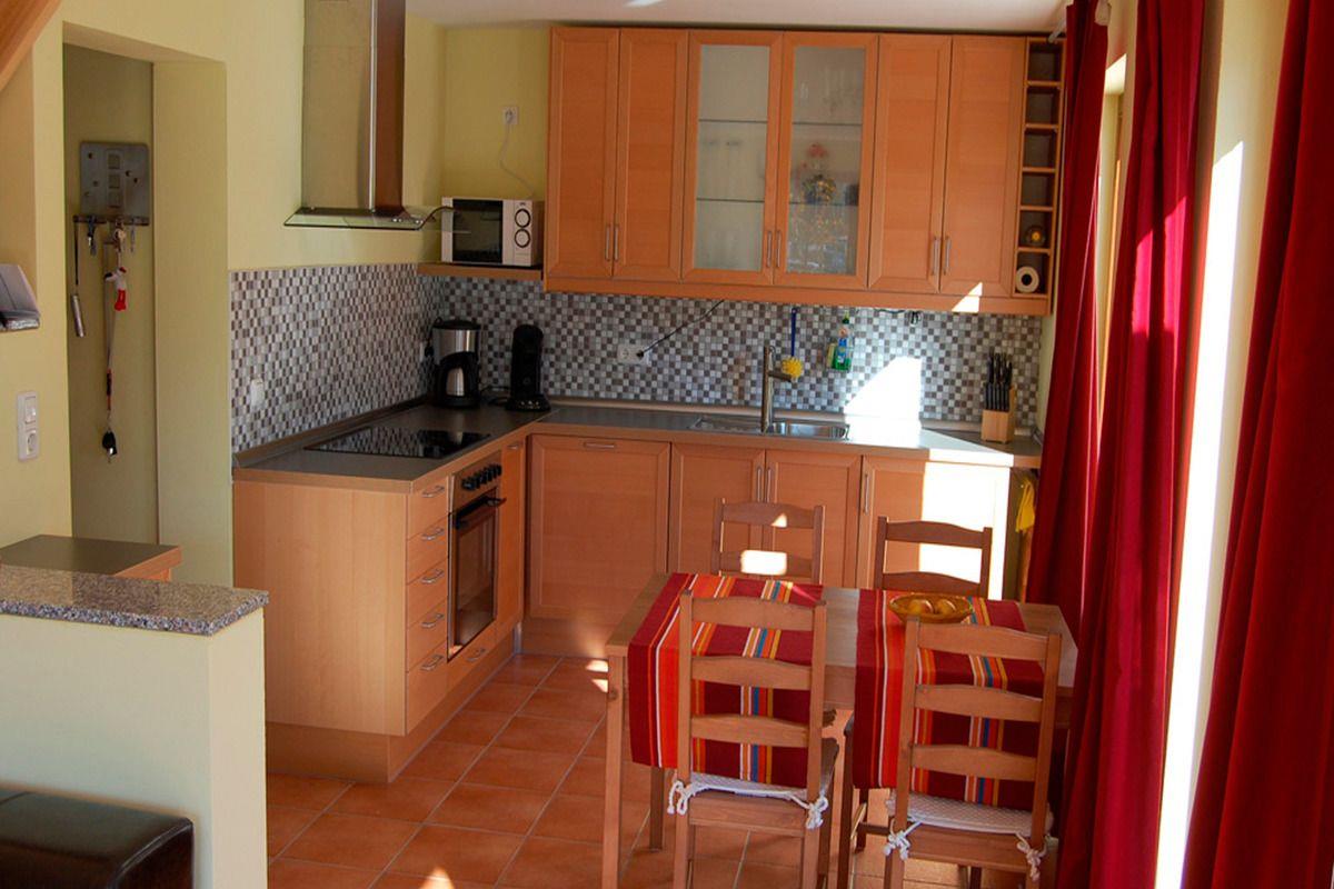 Das 100 m² Haus ist angenehm und komfortabel eingerichtet. Das Wohnzimmer ist mit einer Sitzecke, einem Clubtisch, einem Wohnzimmerschrank, einem Kaminofen, einem TV-Gerät, digital Sat, DVD, Stereoanlage mit USB und iPort Eingang eingerichtet. Der Esstisch für alle Personen schafft die offene Verbindung zur Küche. In dieser finden Sie einen Herd mit Cerankochfeld mit Heißluftbackofen, einer Mikrowelle, einem Geschirrspüler und einem Kühlschrank mit Tiefkühlfach komplett ausgestattet. Von der Senseomaschine über Küchenmaschine/Mixer, Eierkocher bis zum Bräter und Backform ist alles vorhanden. Das erste Schlafzimmer ist mit einem Doppelbett und einem Kleiderschrank ausgestattet und befindet sich wie auch das Badezimmer mit Dusche und Whirlpool im Erdgeschoss des Ferienhauses. Die anderen beiden Schlafzimmer befindet sich im Dachgeschoss. Eines verfügt ebenfalls über ein Doppelbett und einen Kleiderschrank und das andere über ein Einzelbett, welches Ausziehbar mit richtigen Matratzen zum Doppelbett wird. Weiterhin ist in einem TFT TV und im anderen TV und HiFi. Das zweite Badezimmer bietet Ihnen eine Dusche / Schwalldusche und die Sauna zum Relaxen. Am Haus steht Ihnen eine großzügige Südterrasse mit Gartenmöbel, einem Sonnenschirm, einem Strandkorb und einem Grill zur Verfügung. Hier können Sie entspannt beim Frühstück in den Tag starten oder die Abende ausklingen lassen. Zwei Stellplätze für Ihre Pkws sind vorhanden.