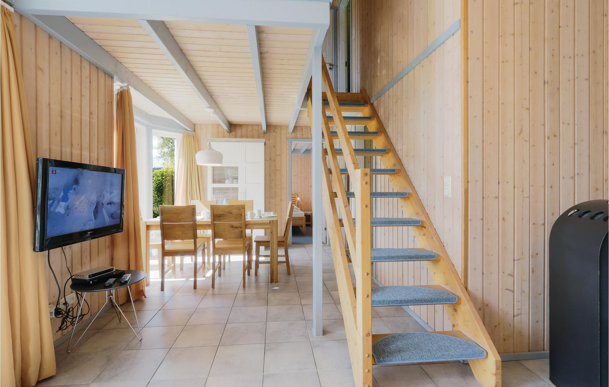 Det hyggelige træhus Wildgans er udstyret med god komfort, som gør jeres ferie dejlig ubesværet. Indvendigt breder værelserne sig over to etager. I stueetagen er der endda et lille wellnessområde med whirlpool og sauna. Her kan I søge optimal velvære eller I kan sætte jer forena den hyggelige brændeovn i opholdsstuen sammen med hele familien. Udenfor giver den delvist overdækkede terrasse god plads til at nyde solen.