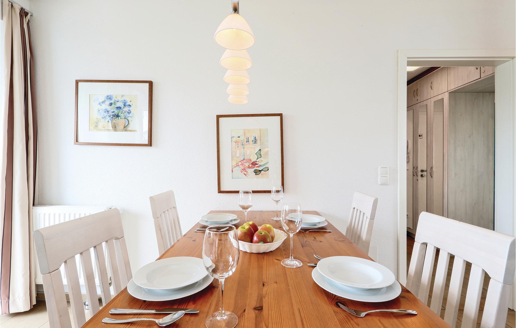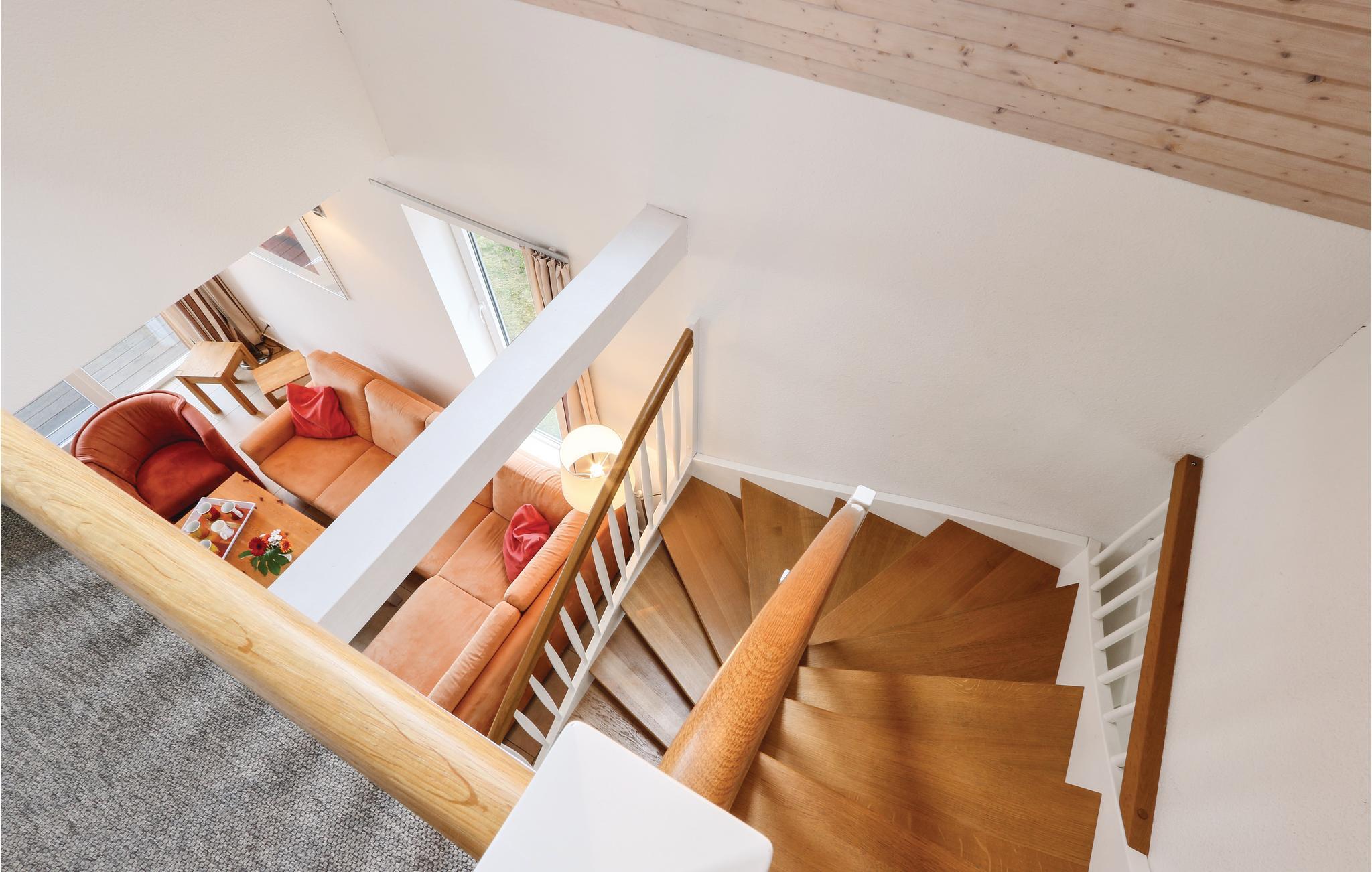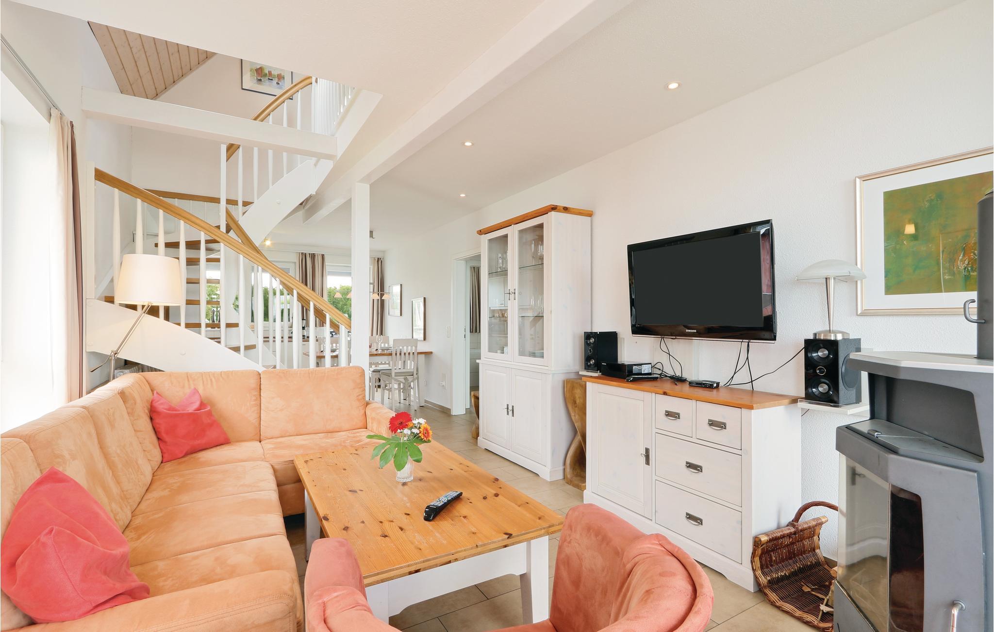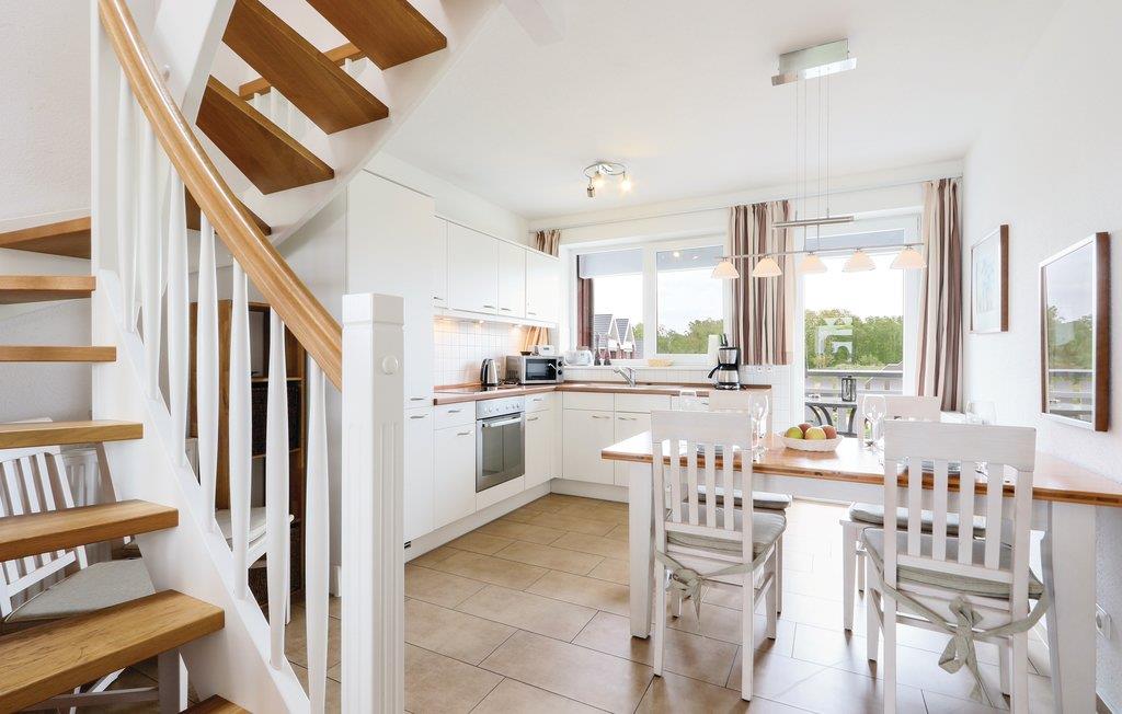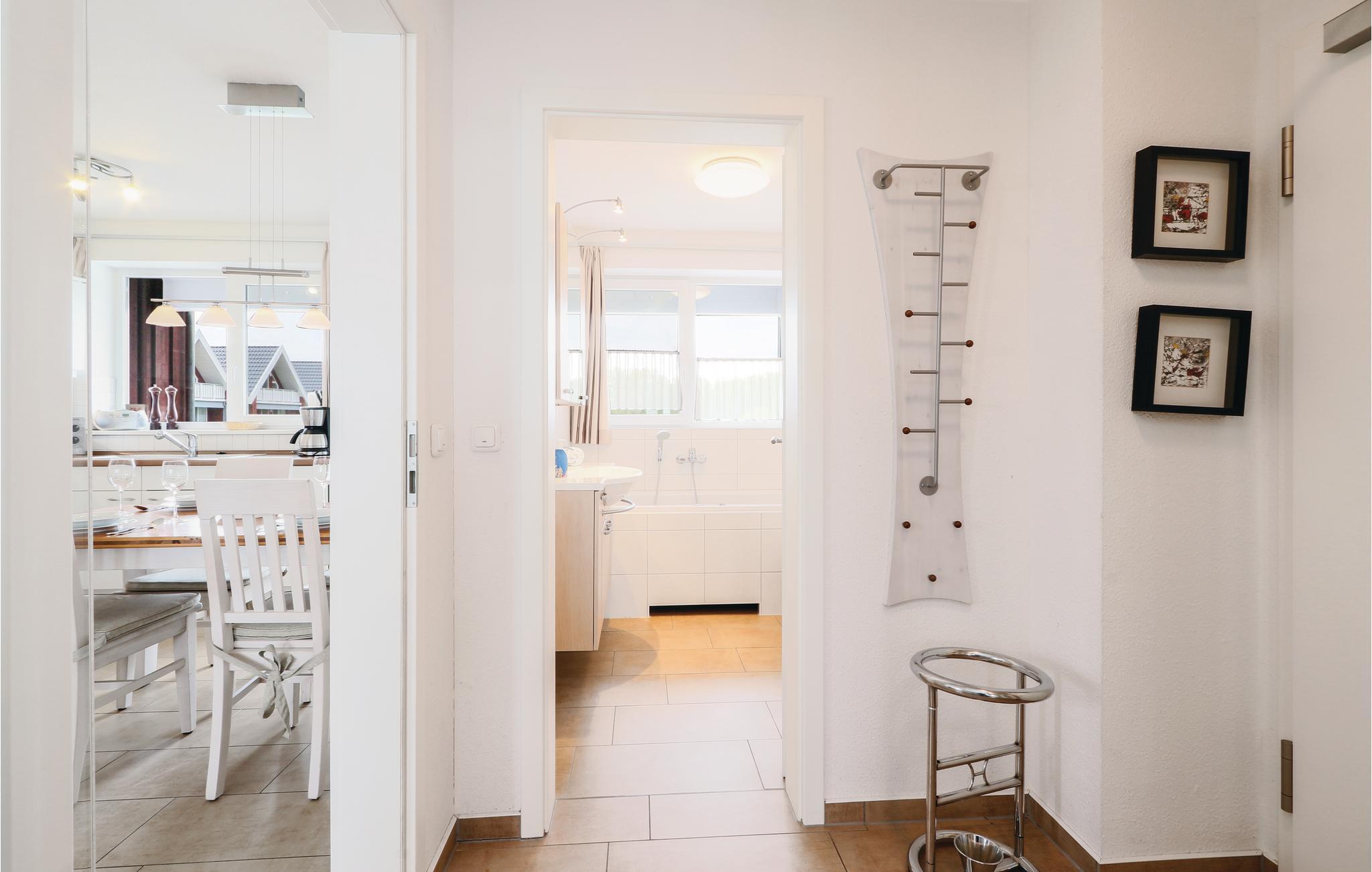 Den toplans lejlighed Kapitänsdeck har en skøn panoramaudsigt over Müritz fra de to altaner. Da der er to altaner er der sol fra morgen til aften. Skulle det ikke være vejr til udendørs ophold, så kan I nyde livet i den lyse stue og tænde op i kaminen. I det store badeværelse er der brusebad og whirlpool, til et afslappet ophold. Der er føntørrer i badeværelset.