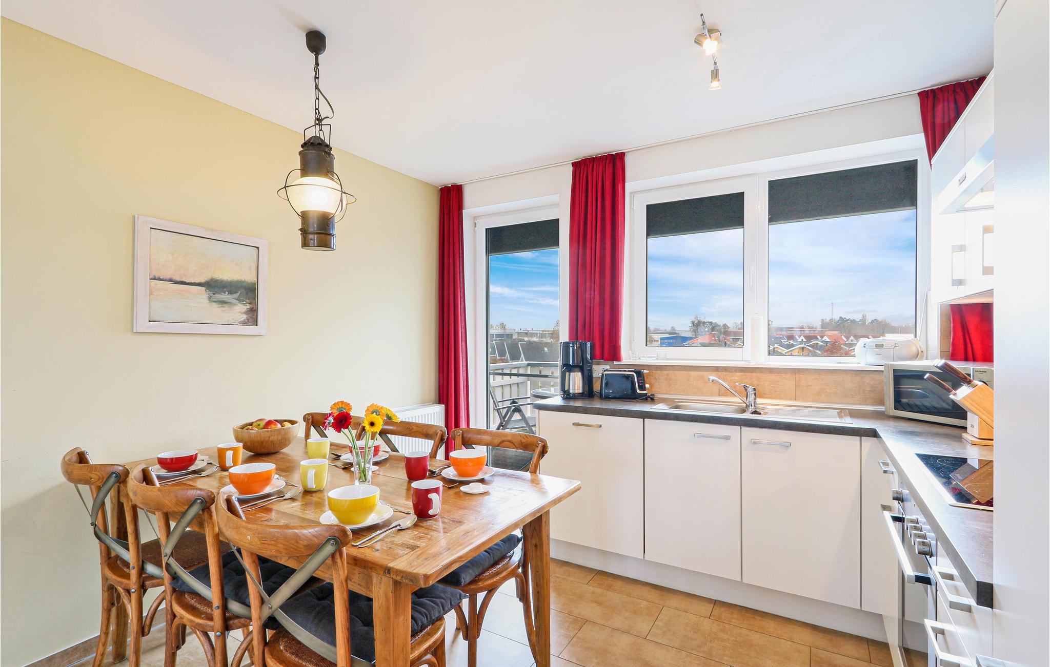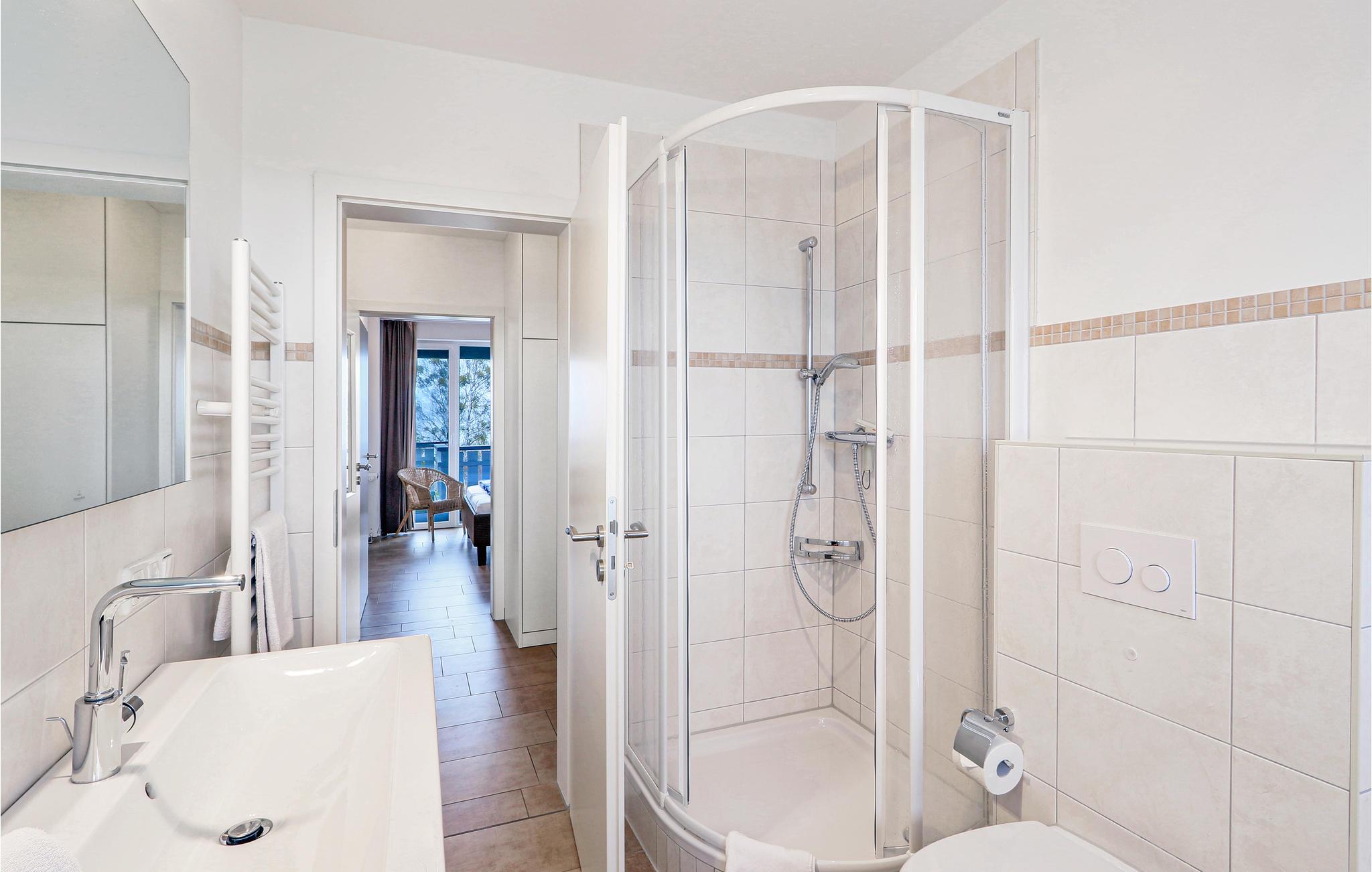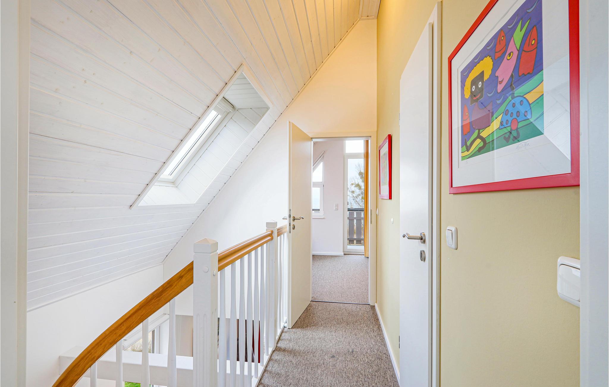 Denne maisonette lejlighed "Kapitänsdesk" har en vidunderlig panoramaudsigt til Müritz fra begge altaner. Da her findes yderligere to altaner, kan I nyde solen helt fra morgen til aften. Hvis vejret ikke skulle arte sig en dag, kan I hygge jer i den meget lyse opholdsstue foran brændeovnen. I det store badeværelse findes et spabad til en person, hvor I kan nyde varmen, boblerne og rigtig slappe af.