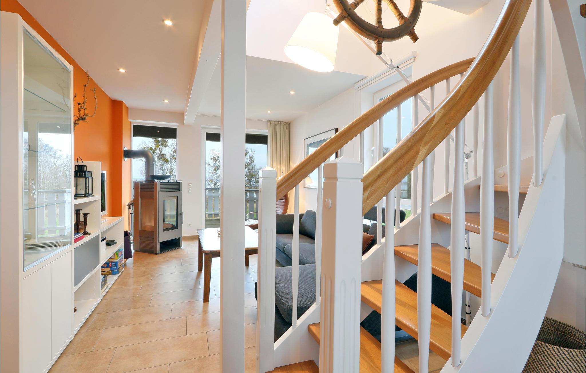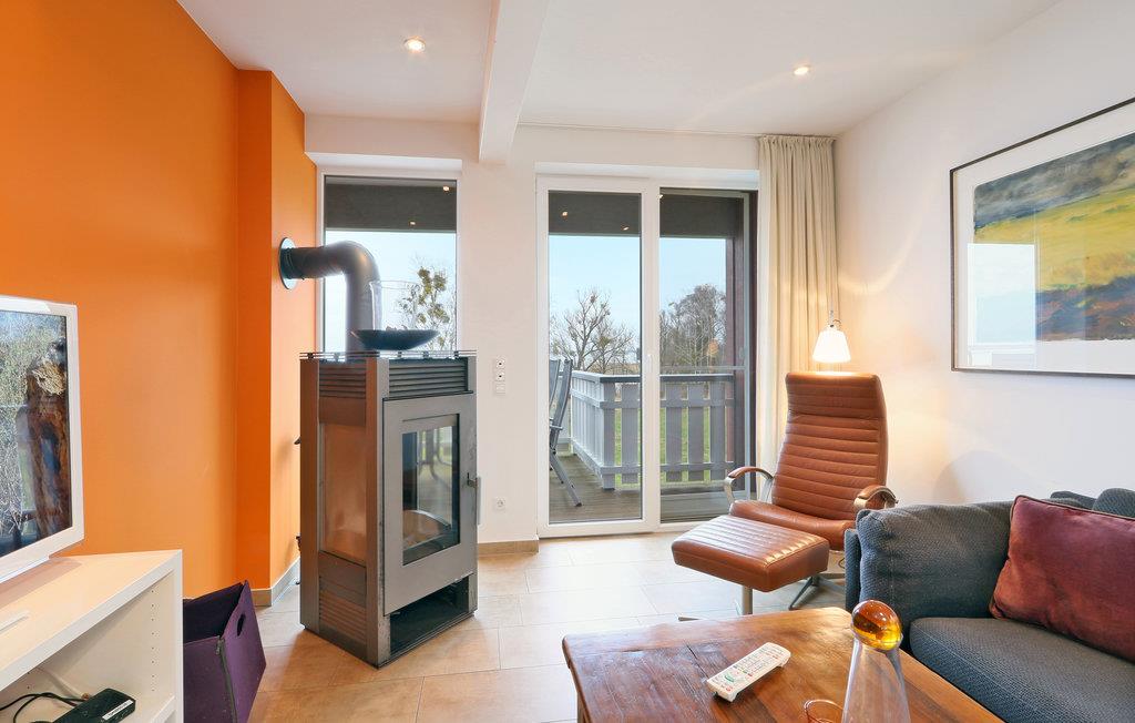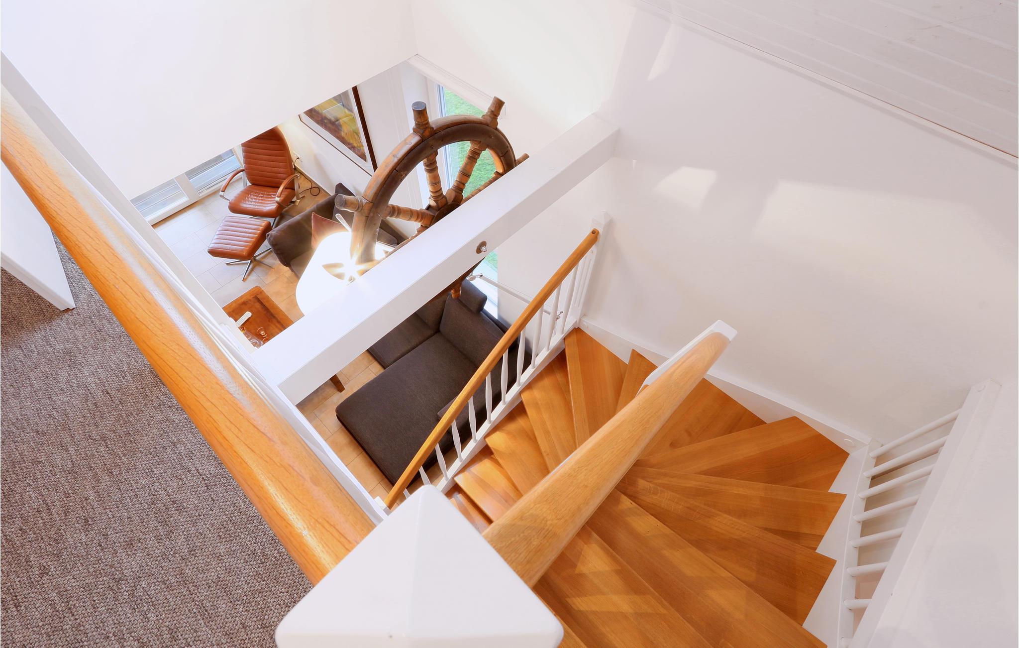 Denne maisonette lejlighed "Kapitänsdesk" har en vidunderlig panoramaudsigt til Müritz fra begge altaner. Da her findes yderligere to altaner, kan I nyde solen helt fra morgen til aften. Hvis vejret ikke skulle arte sig en dag, kan I hygge jer i den meget lyse opholdsstue foran brændeovnen. I det store badeværelse findes et spabad til en person, hvor I kan nyde varmen, boblerne og rigtig slappe af.