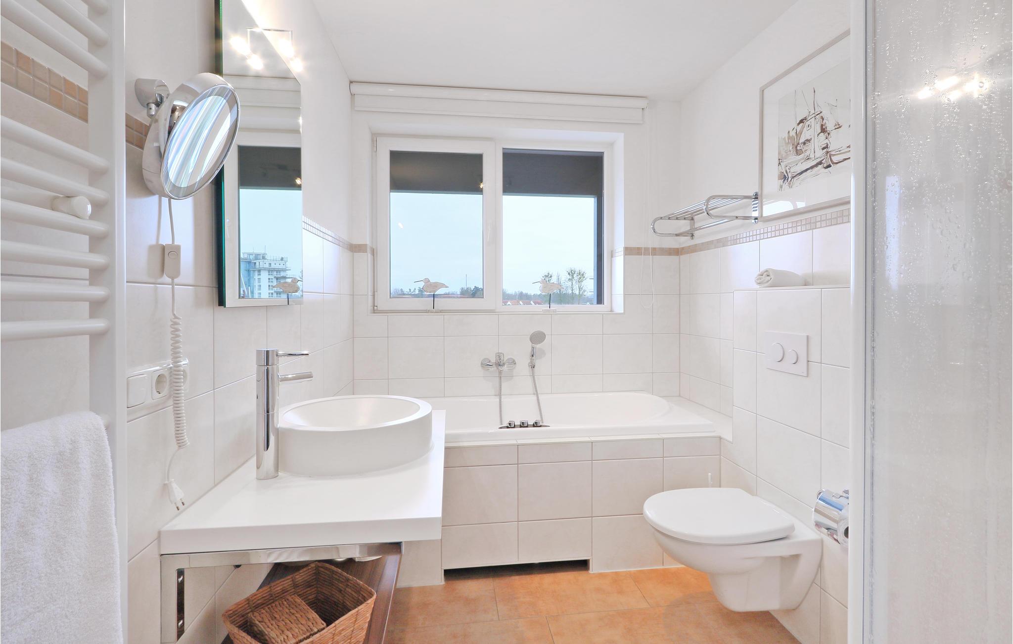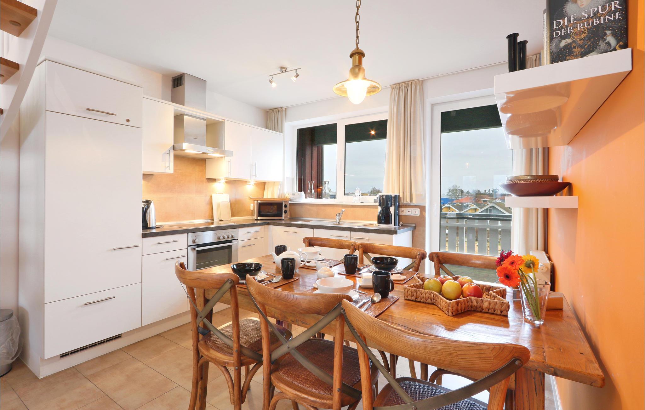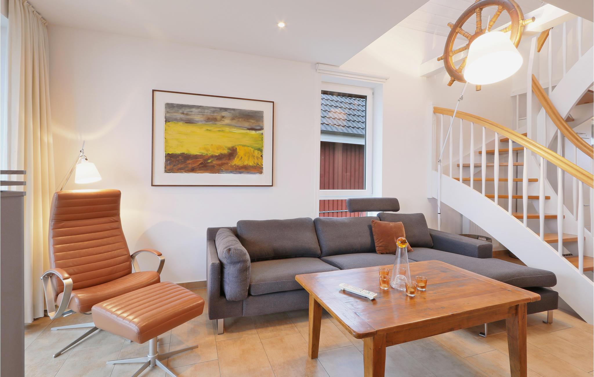 Denne maisonette lejlighed "Kapitänsdesk" har en vidunderlig panoramaudsigt til Müritz fra begge altaner. Da her findes yderligere to altaner, kan I nyde solen helt fra morgen til aften. Hvis vejret ikke skulle arte sig en dag, kan I hygge jer i den meget lyse opholdsstue foran brændeovnen. I det store badeværelse findes et spabad til en person, hvor I kan nyde varmen, boblerne og rigtig slappe af.