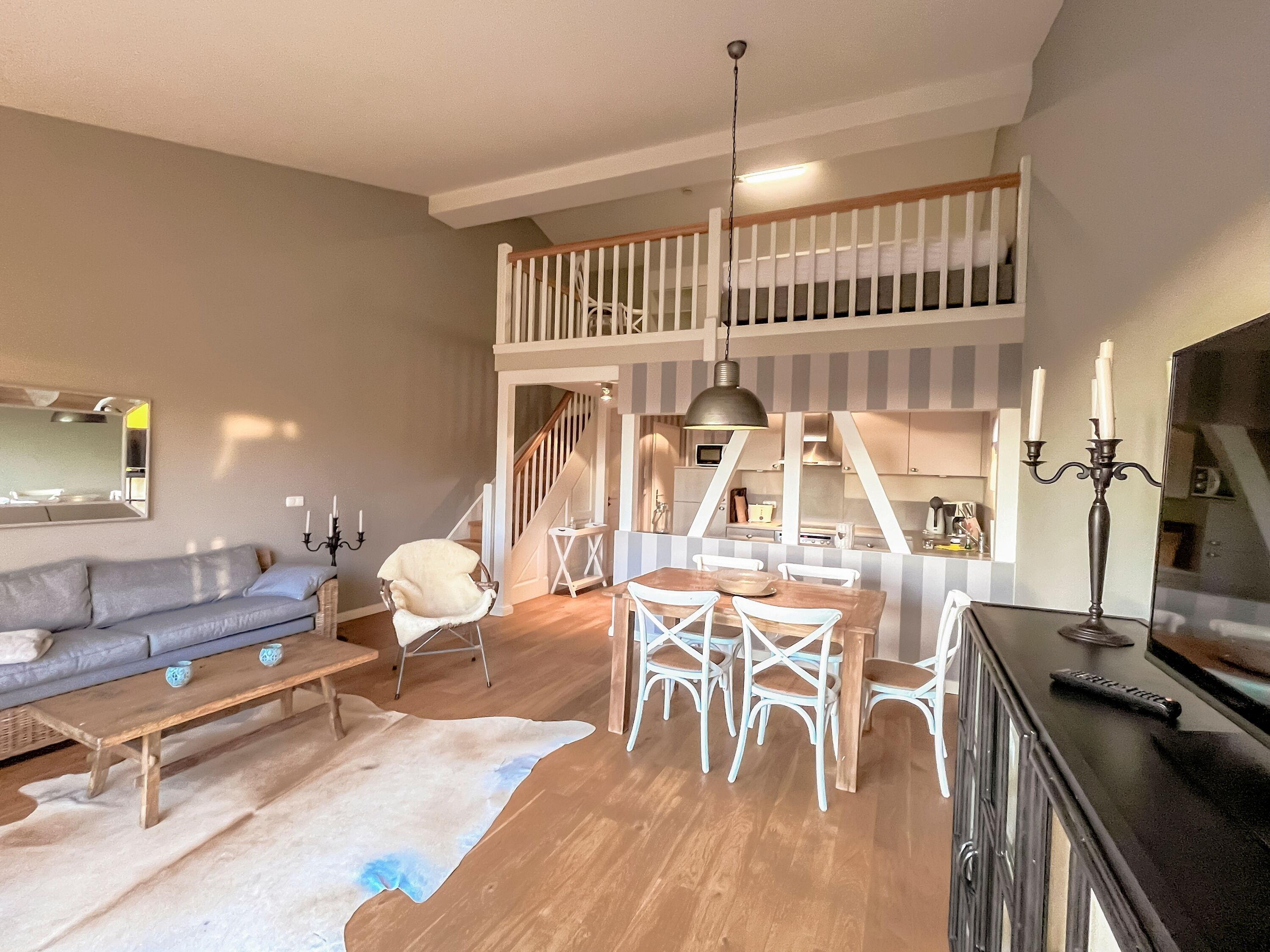 Erleben Sie einen unvergesslichen Urlaub auf dem Lerchenhof, einem herrschaftlichen Anwesen in sehr ruhiger und naturnaher Lage auf der Halbinsel Lieper Winkel auf Usedom. Das hochwertig ausgestattete Maisonette-Appartement, das sich in einem modernen Ausbau über dem Pferdestall befindet, bietet hohen Komfort und eine stilvolle Einrichtung im gehobenen Landhausstil.