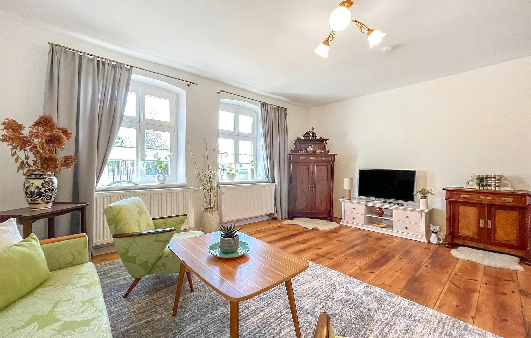 Det cirka 75 kvm store dobbelthus til maks. 2 personer ligger på en 2000 kvm grund (til eksklusiv brug). Det tidligere stuehus fra det 19. århundrede blev omfattende renoveret og indrettet til en høj standard i 2021. Der er en stue (polstrede møbler, fladskærms-tv, kakkelovn), et stort stue-køkken (spisebord, tv, el-komfur med ovn, køleskab med fryser, opvaskemaskine, mikroovn, diverse køkkenmaskiner), et soveværelse (dobbeltseng) og et badeværelse med brus/toilet og vaskemaskine. Boligen opvarmes med centralvarme. Der er overdækket og møbleret terrasse, grillfaciliteter, cykelkælder, parkeringsplads og WiFi til rådighed. To cykler kan lejes på stedet (5 EUR/cykel og dag). Den samlede pris inkluderer slutrengøring, sengelinned, håndklæder samt vand- og energiforbrug. Reetzow er en landsby i de naturskønne omgivelser i det såkaldte Thurbruch, et af de største fenområder i Østtyskland. Omgivet af søen Gothensee og søen Kachliner og krydset af talrige floder og dræningsgrøfter, er området ideelt til vandreture, cykling og fiskeri. På grund af sin nærhed til Østersøferiestedet Bansin (ca. 4 km) med en meget god turistinfrastruktur, tilbyder Reetzow sine gæster en god blanding af landlig idyl og livlig turisme.