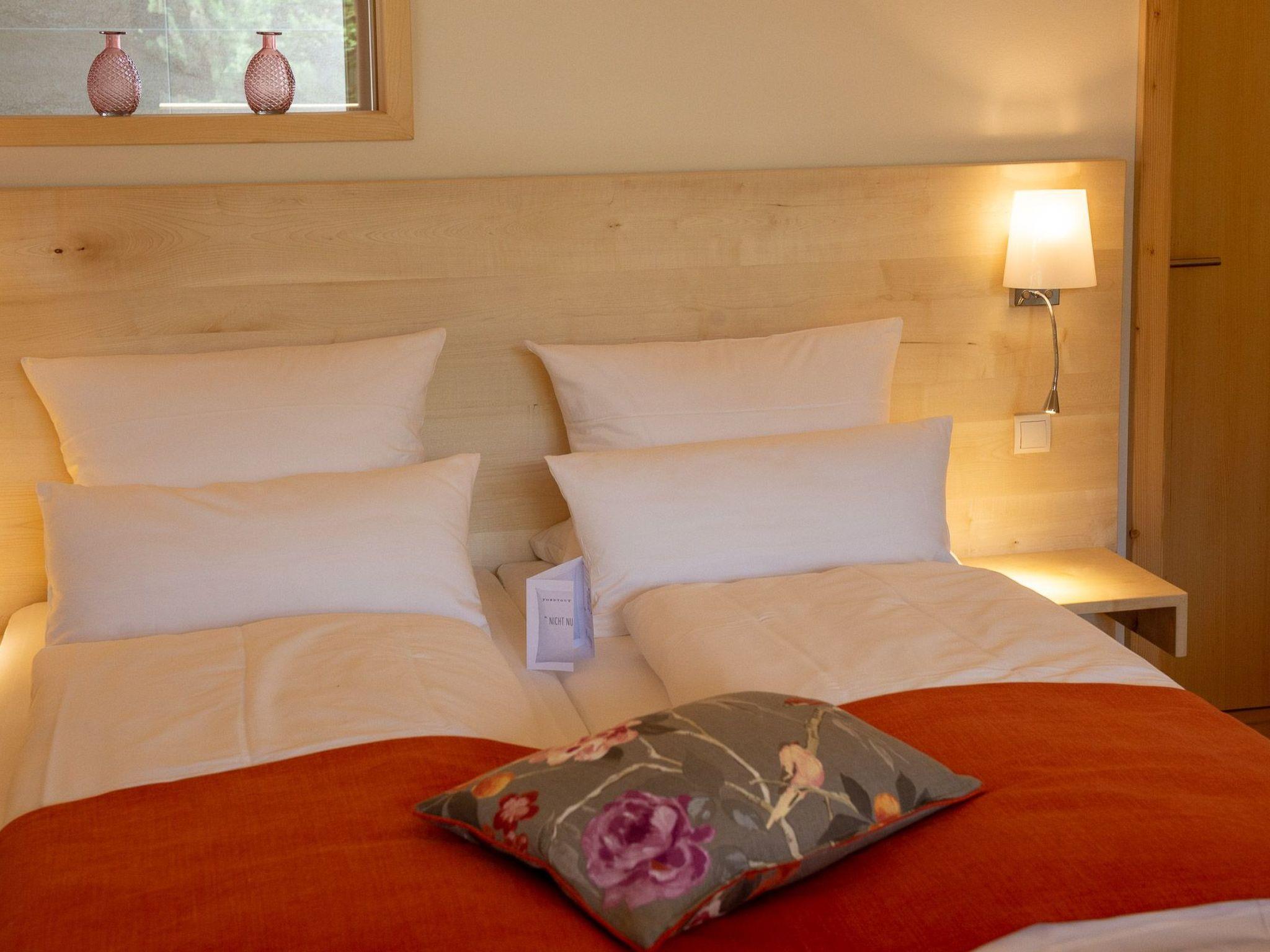 87 square metres offer space for your time at FORSTGUT. Designed for 2 people, we offer you space to relax and take a deep breath with your own sauna in the bathroom and an outdoor hot tub on the covered terrace. The architecture, which is orientated towards valuable visual axes, opens up the space to the nearby estate forest. Nature in view, whether from the sauna, the bedroom or the cosy couch - always close to the estate forest, to the seasons and yet surrounded by a room equipped with a large kitchen, a crackling open fire and cosy reading corners. We invite you to the " Room for VALUABLE TIME - FORSTGUT von Schnurbein"