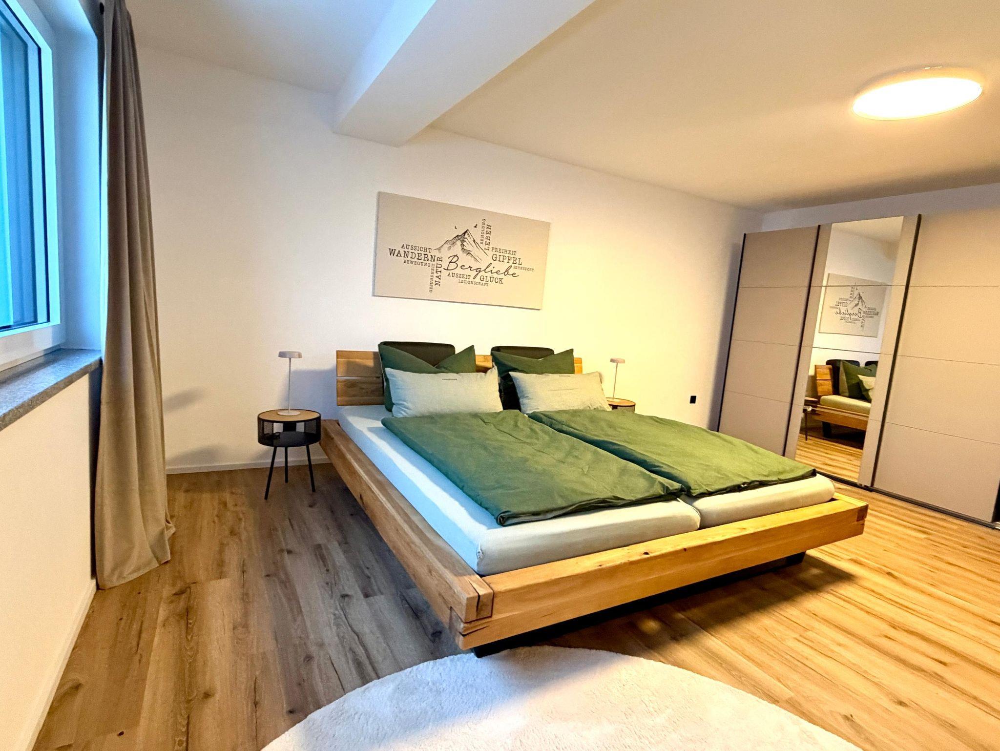 Die moderne, großzügige Ferienwohnung mit ca. 120 qm Wohnfläche bietet Platz für bis zu sechs Personen. Sie verfügt über drei Schlafzimmer, darunter ein Schlafzimmer mit Doppelbett und TV, ein weiteres Schlafzimmer mit Doppelbett und einem Einzelbett sowie ein Schlafzimmer mit einem Einzelbett. Der Wohnbereich mit gemütlichem Sofa und TV ist offen zur Küche und zum Essbereich gestaltet und bietet viel Raum für gemeinsames Beisammensein. Ein Badezimmer mit Dusche und WC rundet die Ausstattung ab. Diese Wohnung ist ideal für größere Familien oder Gruppen, die Komfort und ausreichend Platz wünschen.