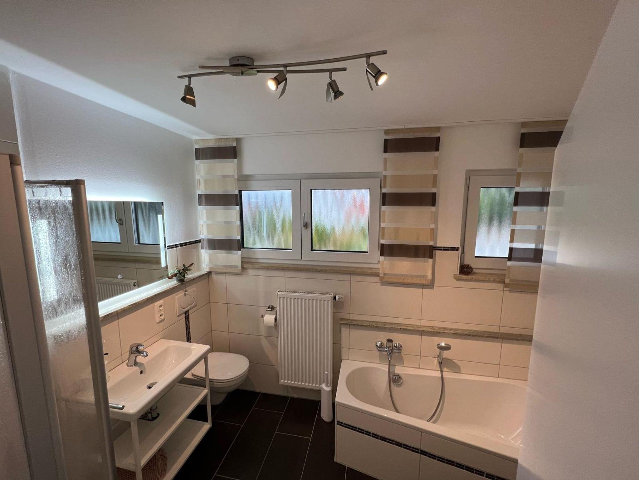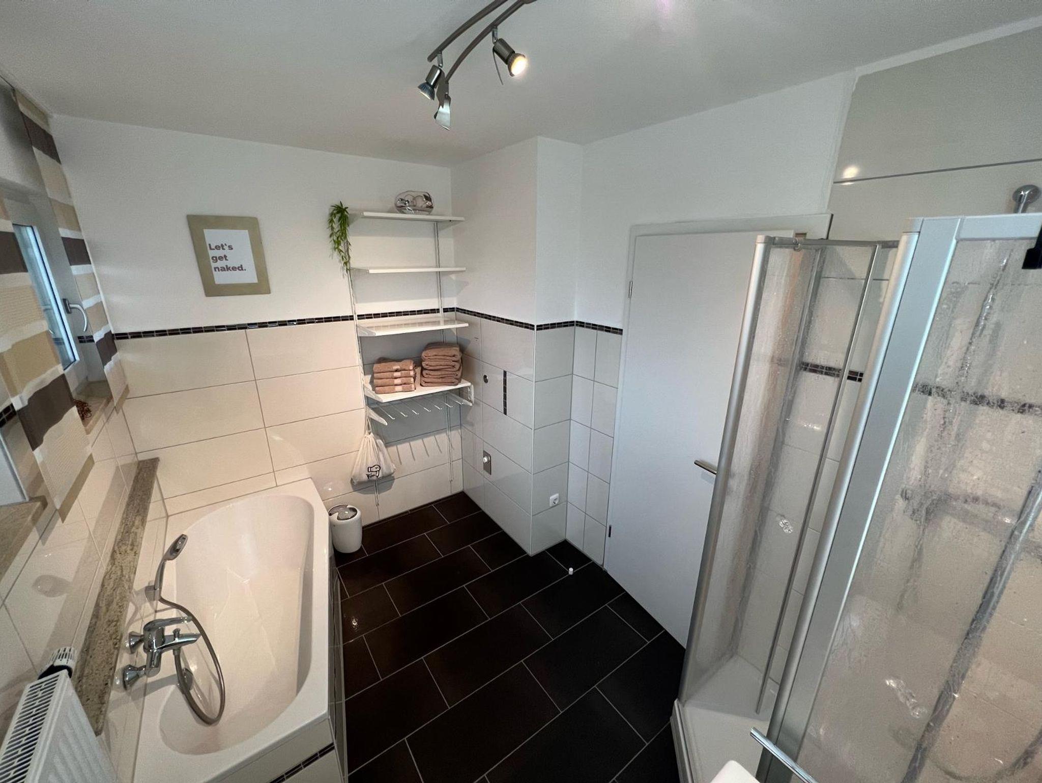 Bad mit Dusche, WC, Badewanne, Fön und je 1xDusch-/Handtuch-Set pro Person;