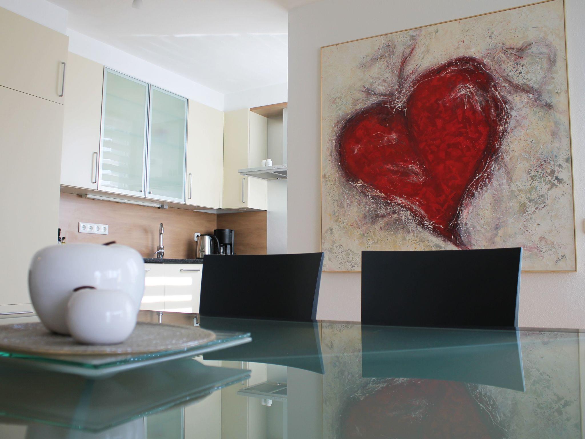 Inside the holiday flat you will find all the amenities you need for a carefree stay. The flat has two bedrooms and two bathrooms, making it ideal for families or small groups travelling together but who value their personal space. For your convenience, there is a washing machine and tumble dryer for your sole use. The kitchen is fully equipped with a ceramic hob, coffee machine, kettle and dishwasher to facilitate self-catering.