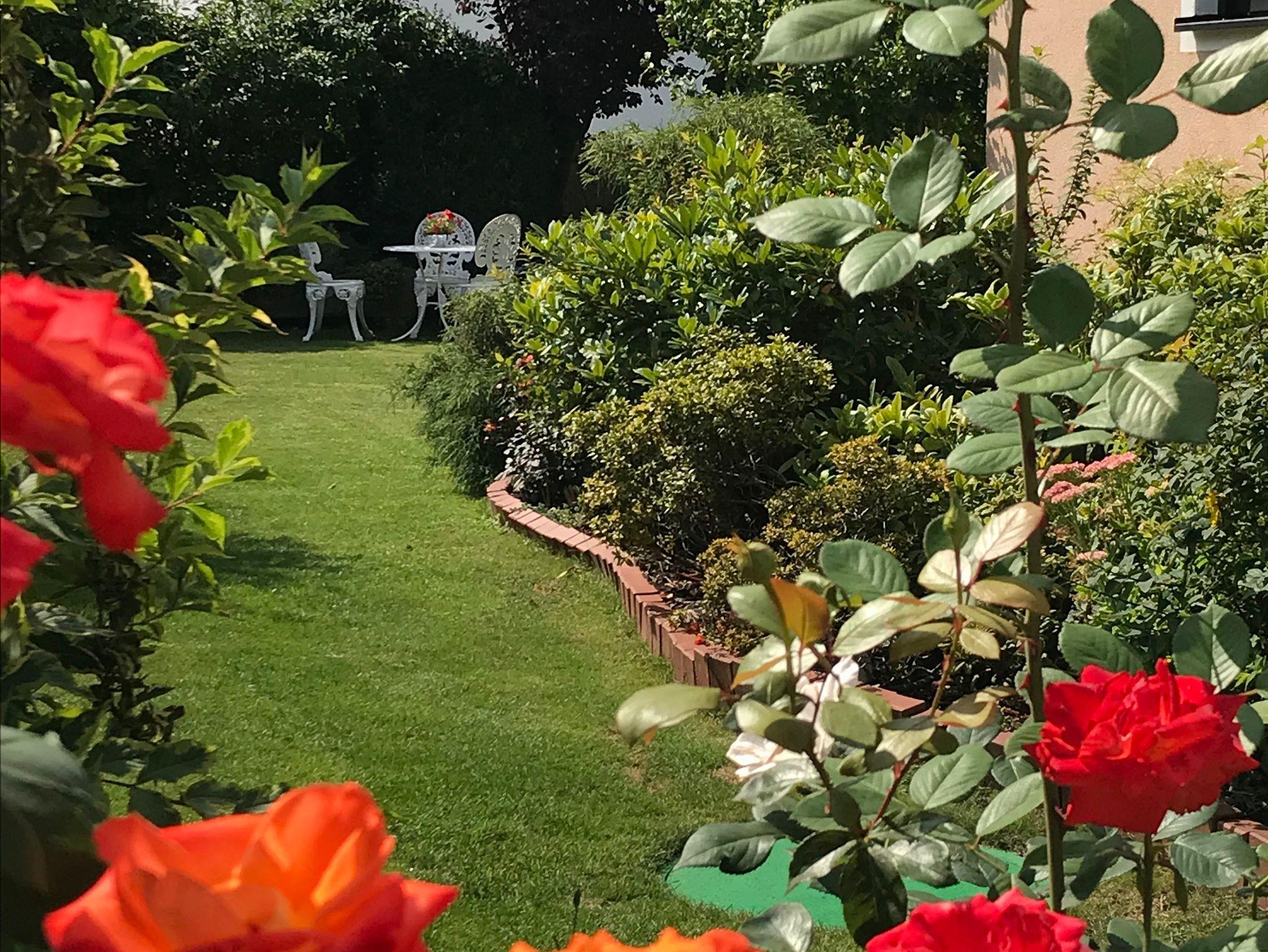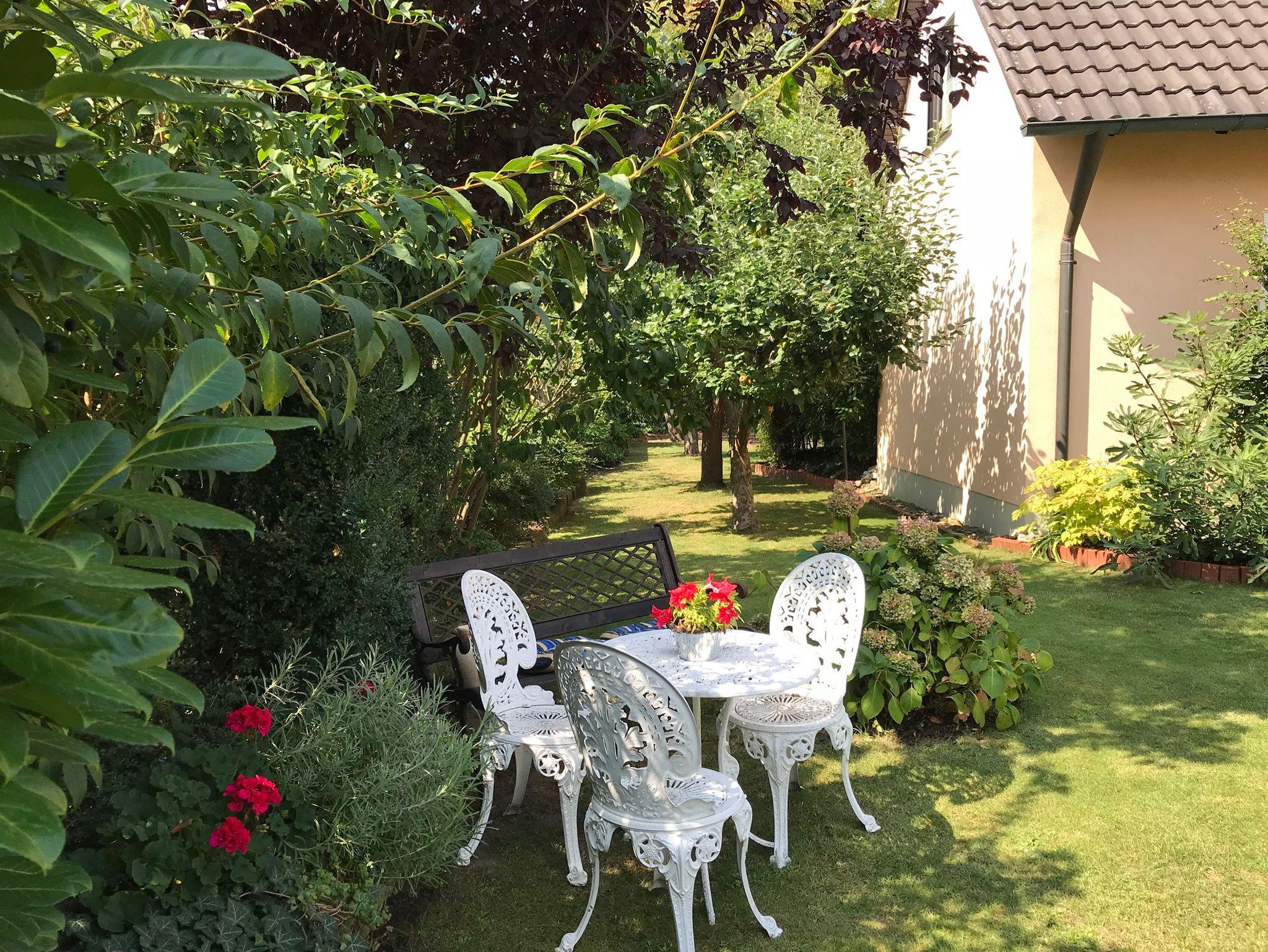 Eine kleine Sitzecke im Garten lädt zum Verweilen ein