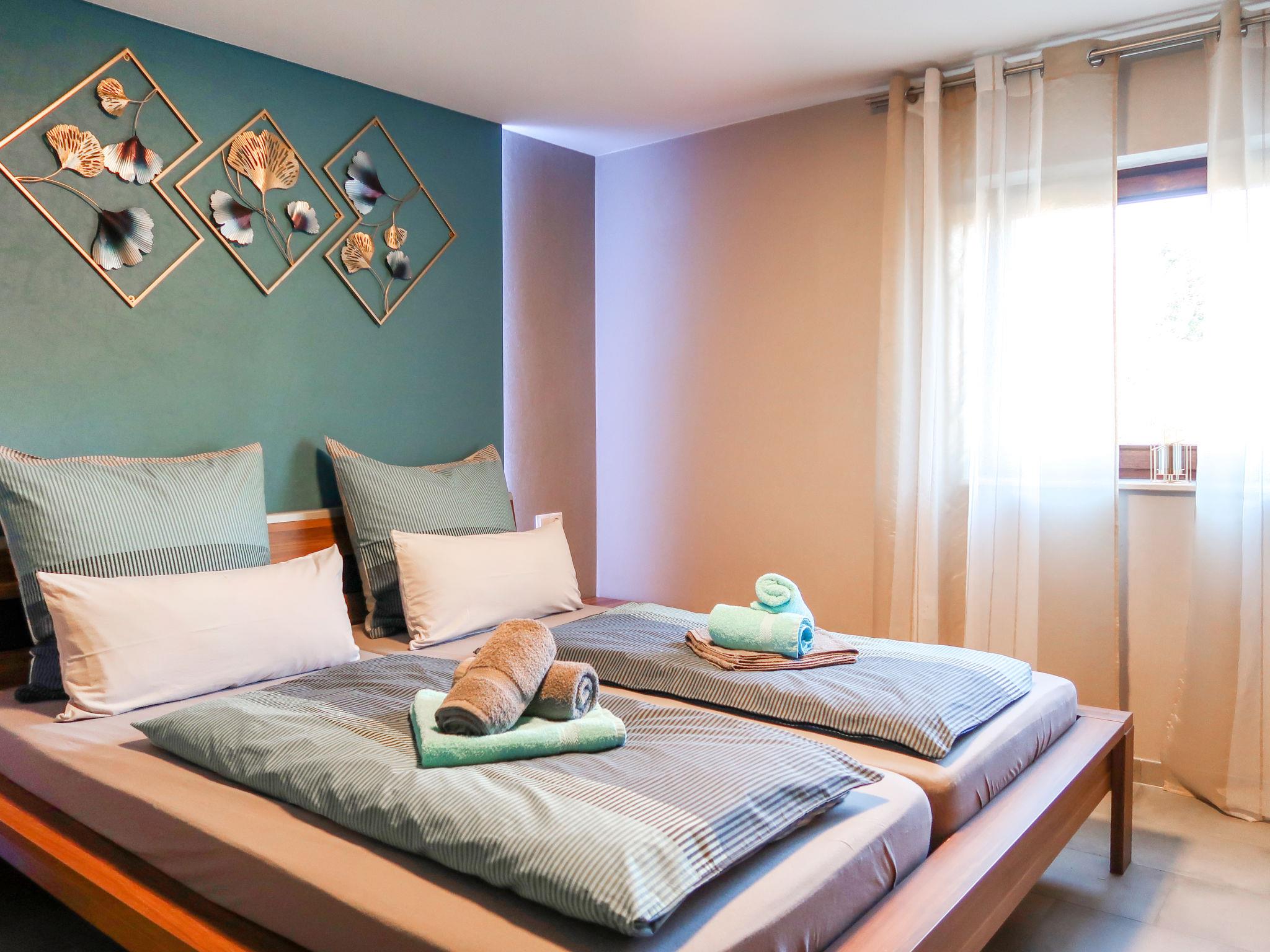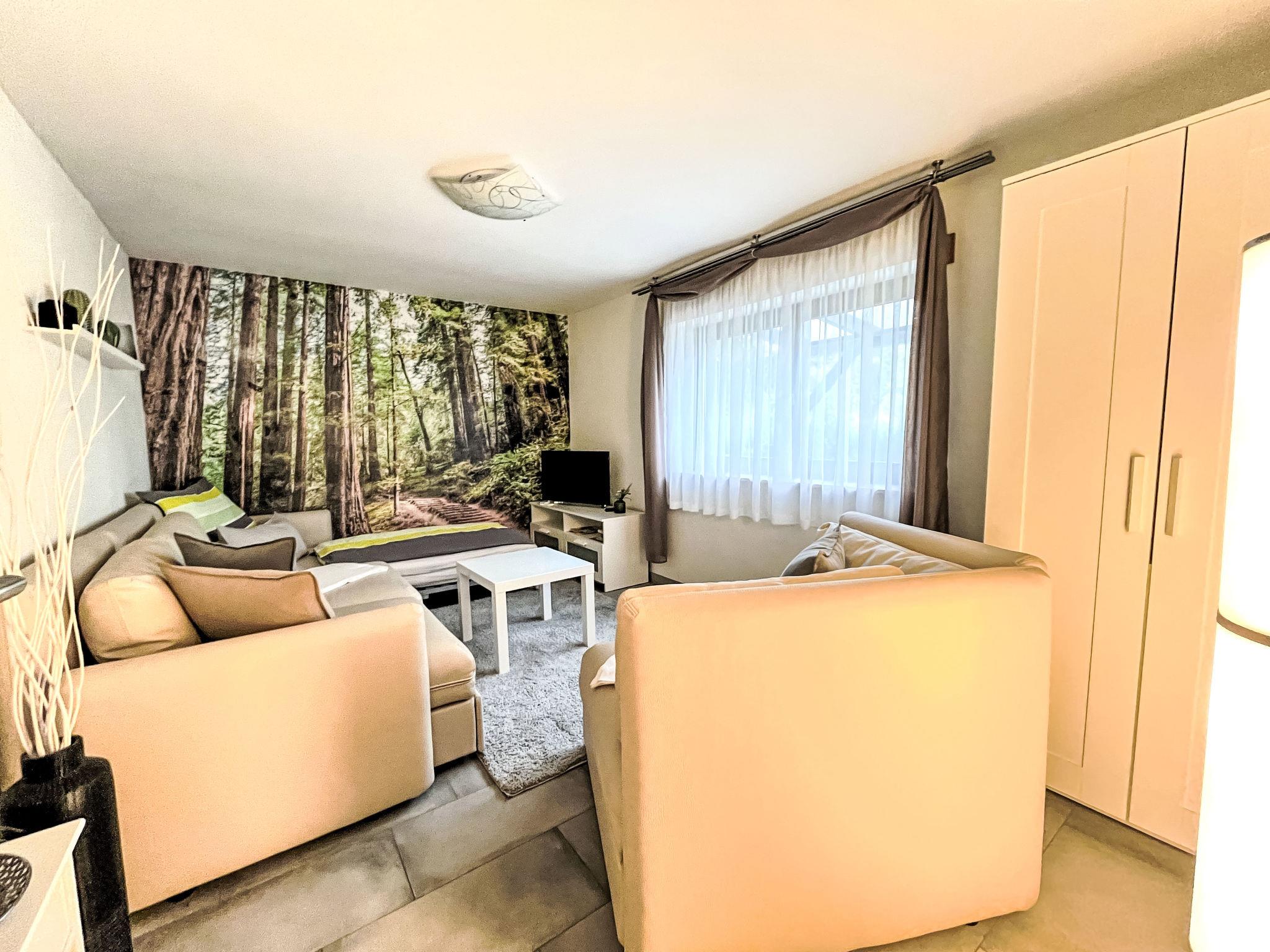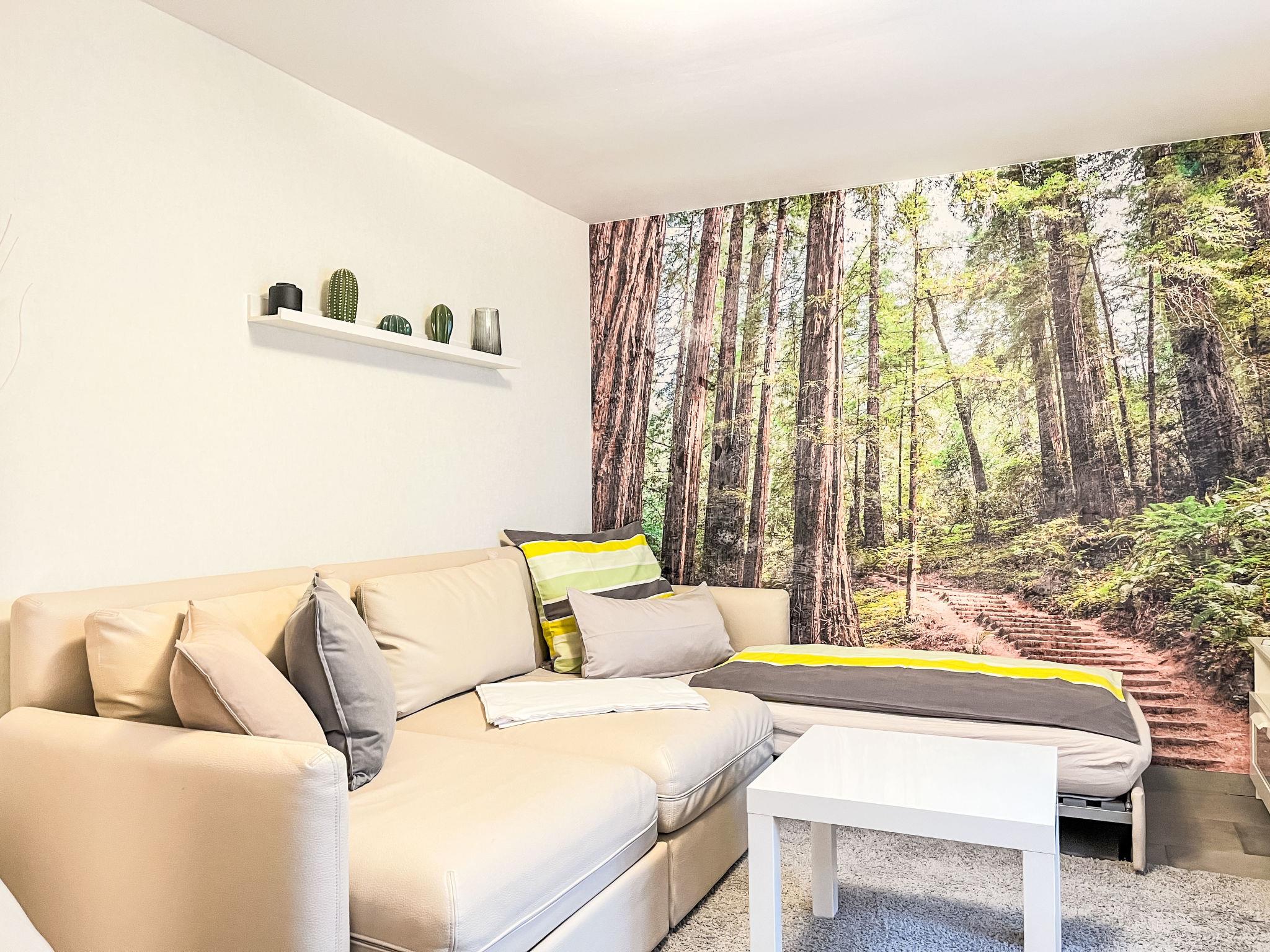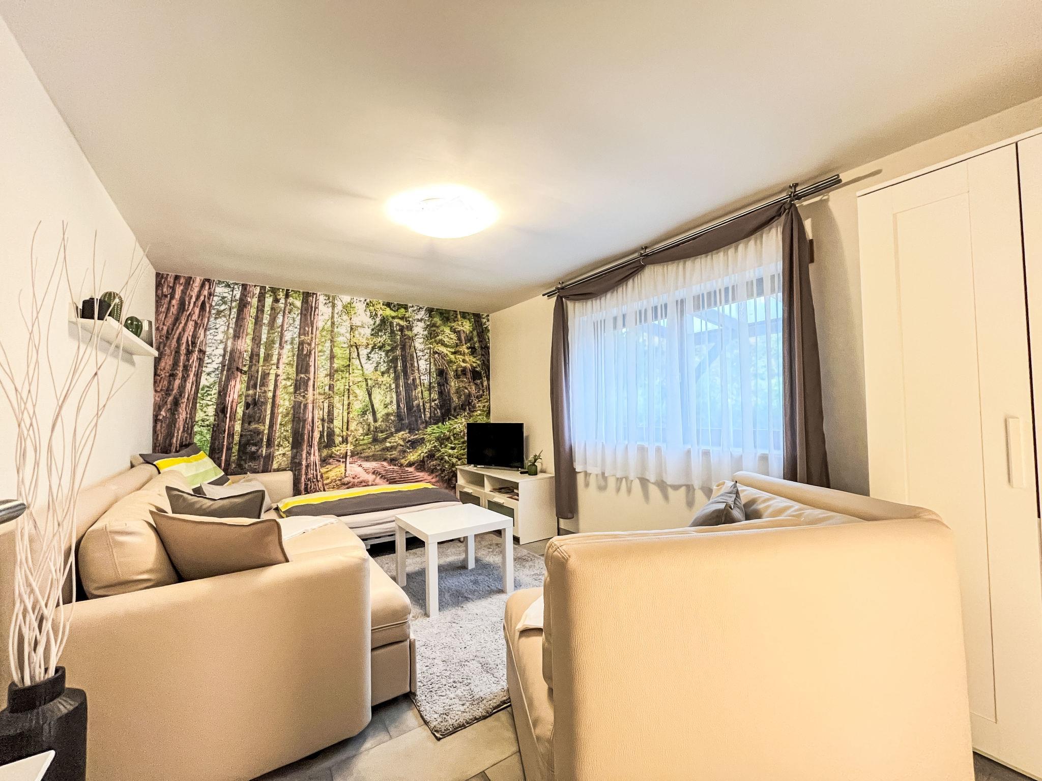 2-room apartment 51 m2, lower ground floor. Fully renovated in 2022, beautiful and cosy furnishings: living/sleeping room with 2 sofabeds and satellite TV (flat screen). 1 room with 1 double bed (180 cm, length 200 cm). Kitchen (oven, dishwasher, toaster, kettle, microwave, electric coffee machine) with dining table. Shower/WC. Underfloor heating. Patio, small garden 30 m2. Terrace furniture, barbecue, deck chairs (2). Facilities: washing machine, dryer. Internet (WiFi, free). Parking (1 car) at the house. Please note: non-smokers only. Private entrance, smoke alarm.