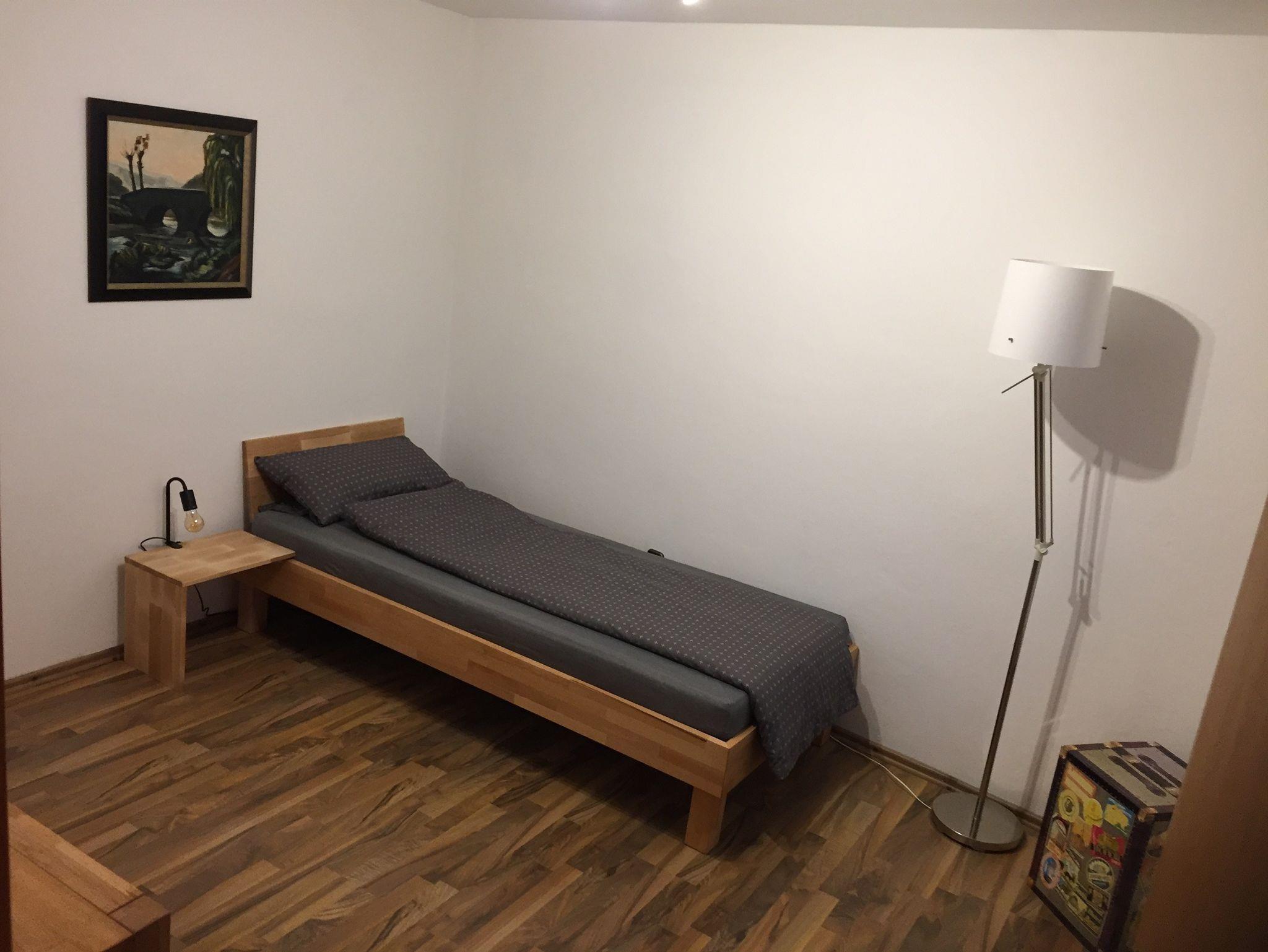 Der 2. Schlafraum ist ein 14m² großes Einzelzimmer (Einzelbett 100 x 200cm) mit ,,minimaler‘‘ Dachschräge, Kleiderschrank, Sideboard, Ledercouch, Flachbild TV.