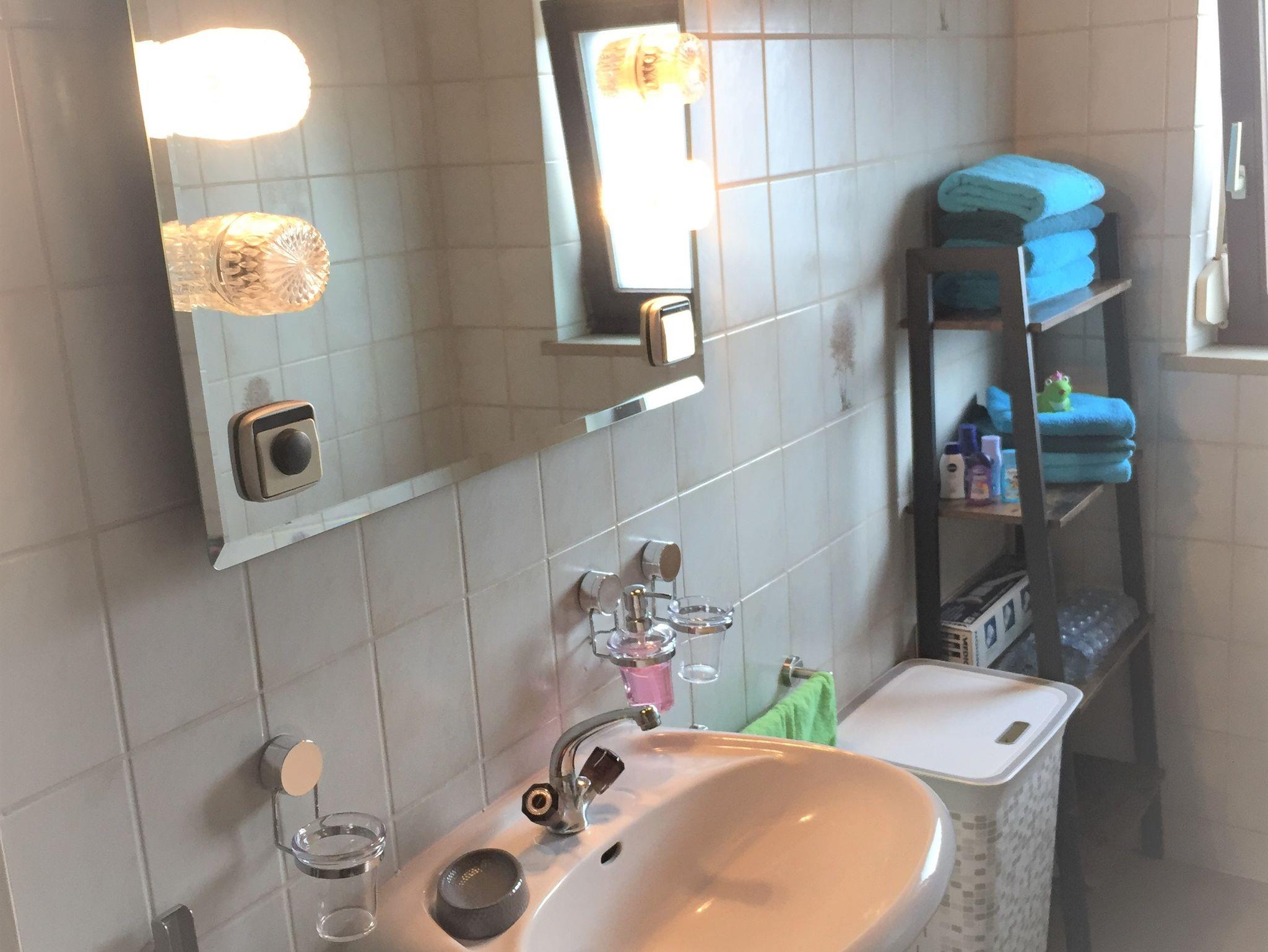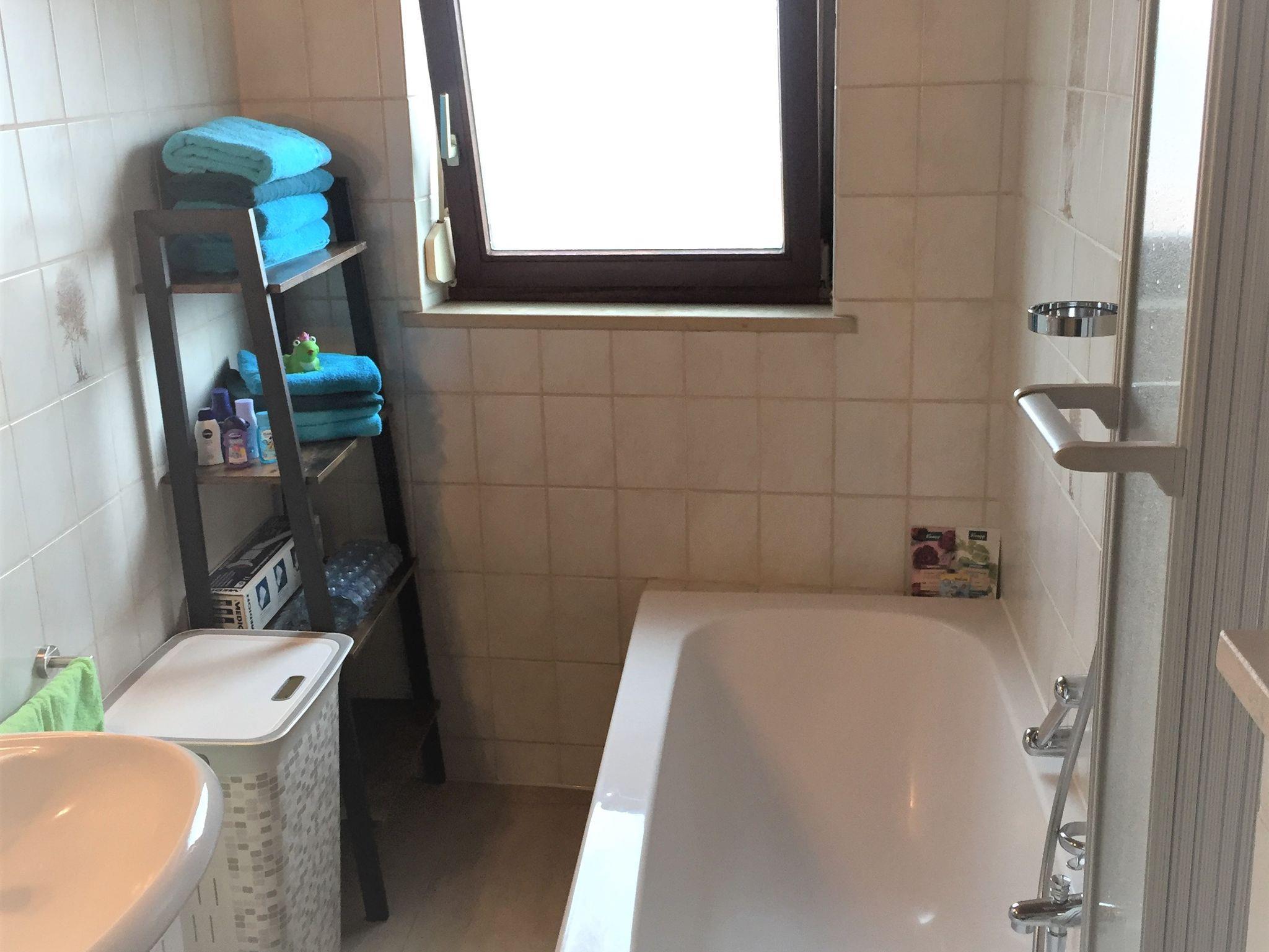 Weiterhin befindet sich im 1. OG das 2. Bad mit Fenster, Badewanne, WC und ist ebenfalls mit allen nötigen Accessoires des täglichen Bedarfs ausgestattet.