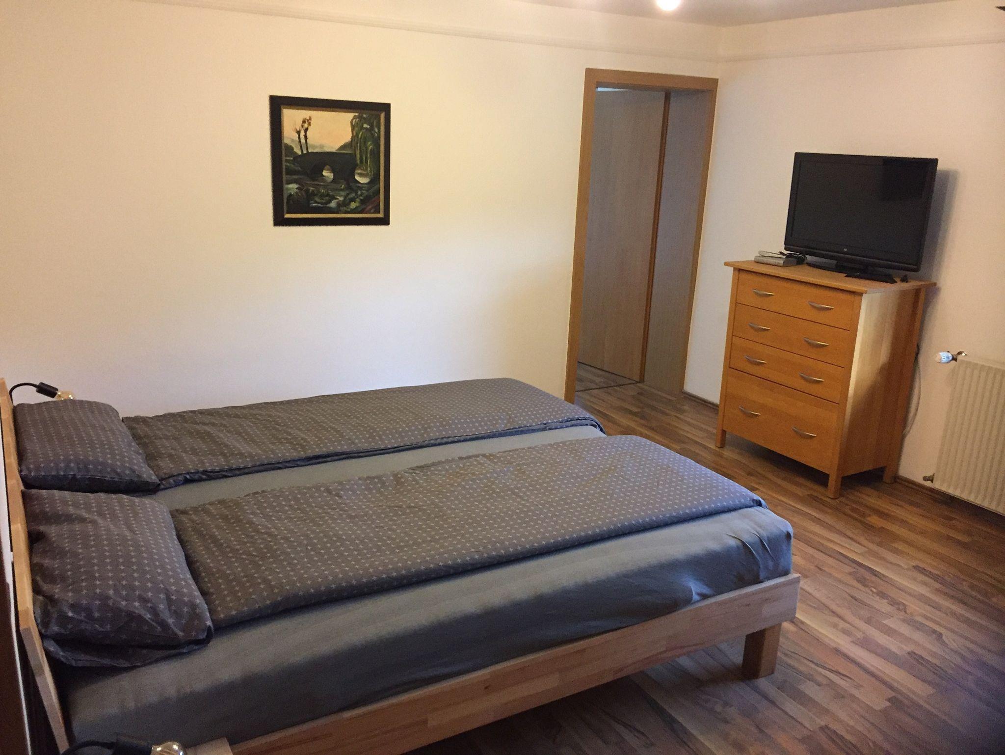Die erste Einheit besteht aus einem Doppelzimmer (Doppelbett 180 x 200cm) TV, Kleiderschrank, TV-Kommode und einem angrenzenden kleineren Einzelzimmer (Einzelbett 90 x 200), Sideboard + Kleiderständer