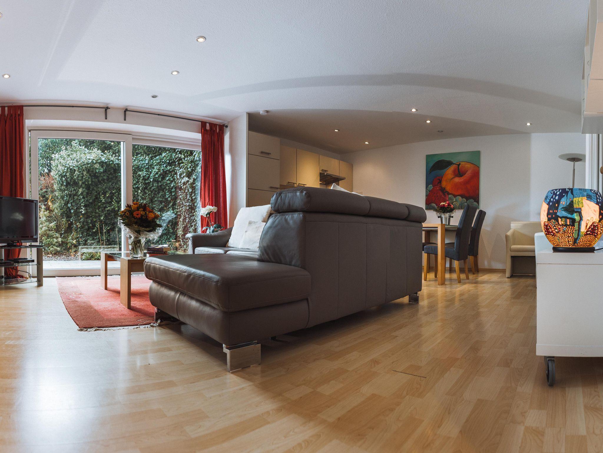 Die Wohnung verfügt über eine eigene Terrasse mit Gartenmöbeln. Im Garten des Hauses stehen natürlich auch Gartenmöbel und Liegen zur Nutzung bereit. Eigene, kostenfreie Parkplätze sind direkt am Haus. Es handelt sich um eine Nichtraucherwohnung. Auf den Terrassen oder im Garten kann gerne geraucht werden. Haustiere sind nicht erlaubt. Hund auf Anfrage. Im Flur steht ein Schrank mit Putzmitteln, Staubsauger, sowie Brettspielen, Spielkarten und Büchern bereit für unsere Gäste.