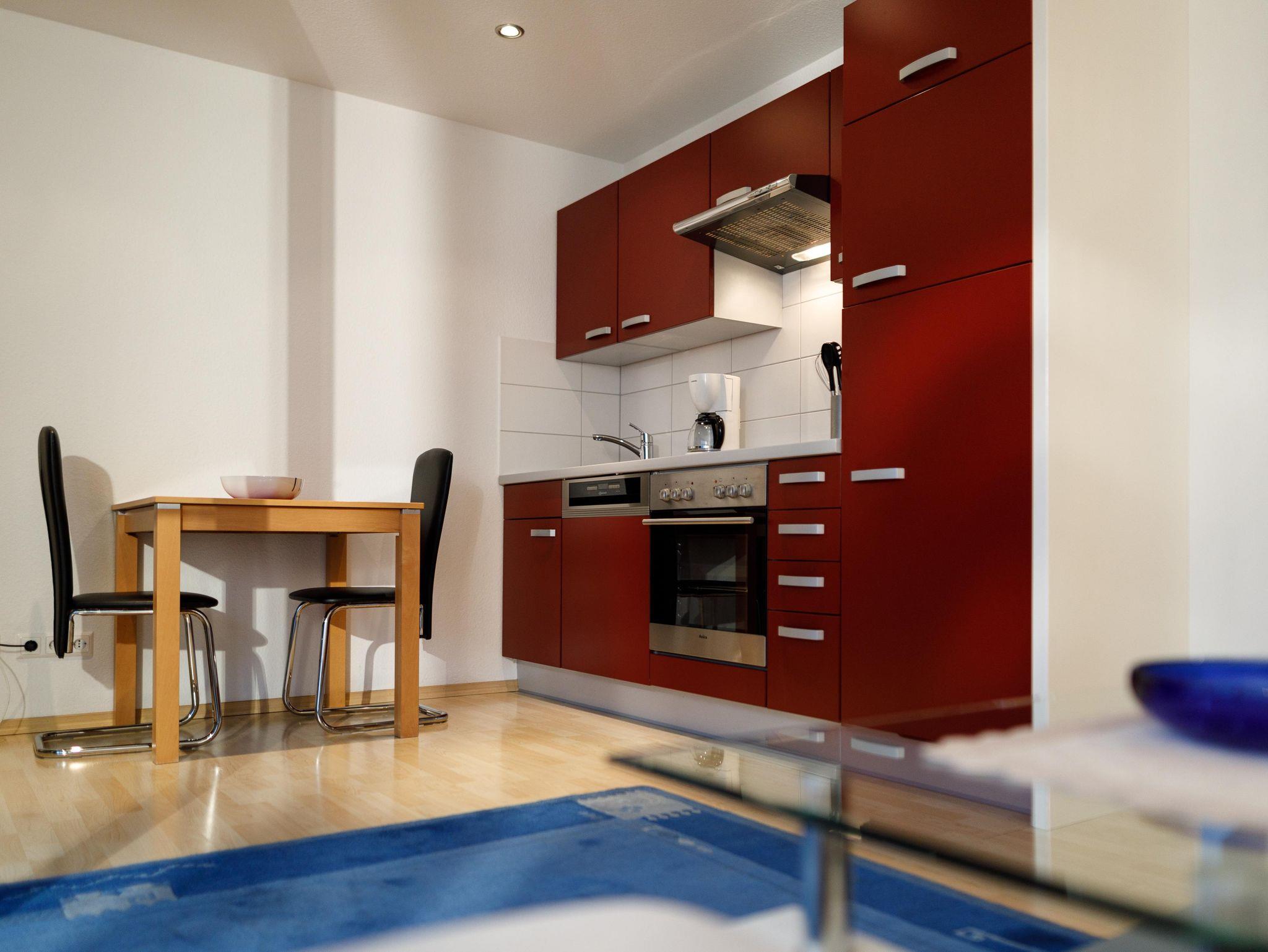 Die vollausgestattete Küche inklusive Essbereich befindet sich ebenfalls in diesem Raum.