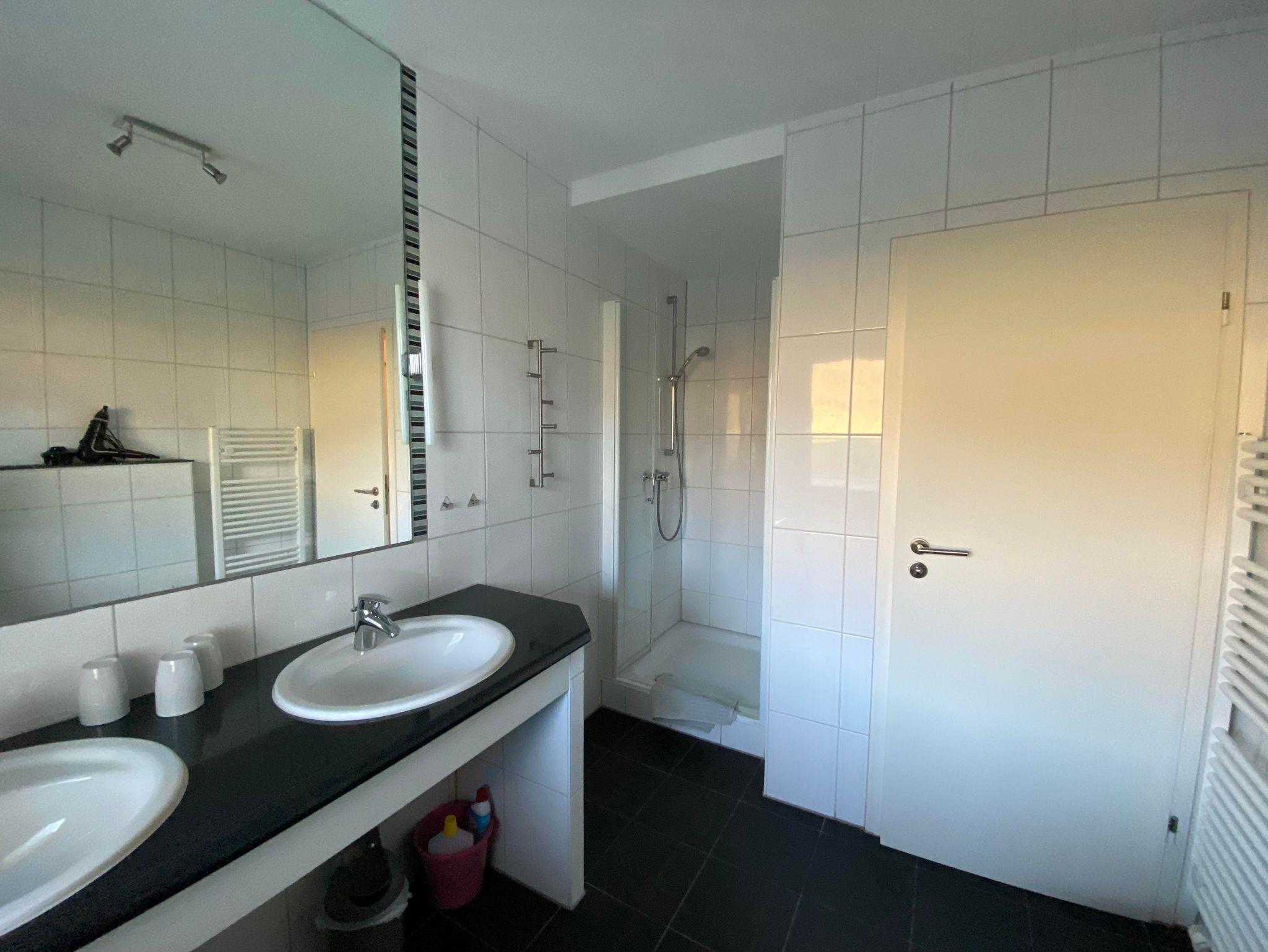 Sie verfügt über drei Schlafzimmer mit jeweils 1,80 m x 2,00 m großen Doppelbetten mit getrennten Matratzen, zwei Nachtschränken und einem Kleiderschrank. Ein modernes Badezimmer bestehend aus Dusche, Waschbecken und WC ist direkt von einem Schlafzimmer aus betretbar. Das große Hauptbad verfügt über eine Dusche, zwei Waschbecken, einem WC, einem Bidet und einem Handtuchwärmer. Beide Bäder besitzen ein Außenfenster und lassen sie dadurch wunderbar durchlüften. Ein großes Wohnzimmer mit gemütlicher Couch lädt zum Verweilen ein. Ein großer Smart-TV rundet das Angebot ab. Die vollausgestattete Küche inklusive Essbereich mit ausziehbarem Esstisch befinden sich ebenfalls in diesem Raum.