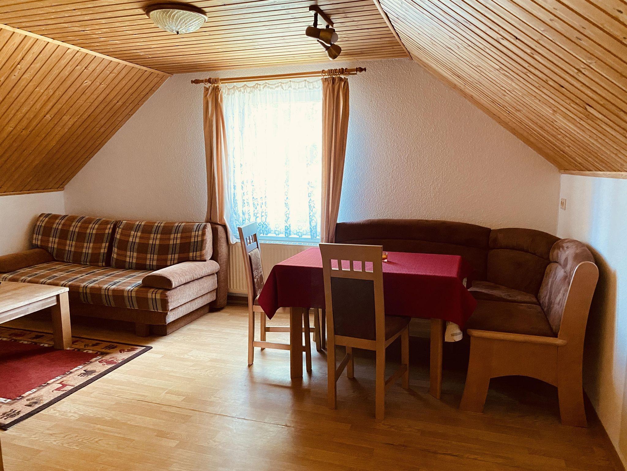 Die Ferienwohnung Häntzschelstiege befindet sich im Dachgeschoss und ist mit einer Wohnfläche von ca. 47 m² ideal für 2 bis 4 Personen geeignet. Das gemütliche eingerichtete Wohnzimmer verfügt neben einer separaten Essecke auch über eine Schlafcouch. Die Küche ist mit einem Kochfeld, Kühlschrank, Kaffeemaschine, Wasserkocher und Toaster ausgestattet. Dusche/WC finden Sie im Badezimmer. Von dem Balkon genießen Sie einen traumhaften Ausblick in die Sächsische Schweiz. Ein zusätzliches Kinderbett können wir Ihnen bei Bedarf bereitstellen.