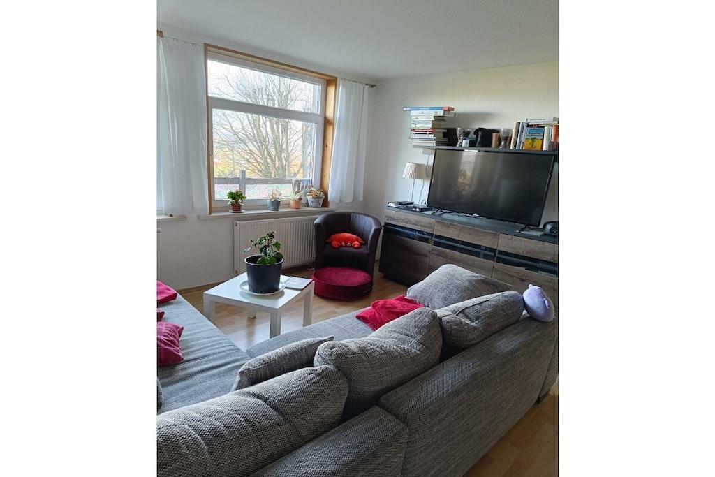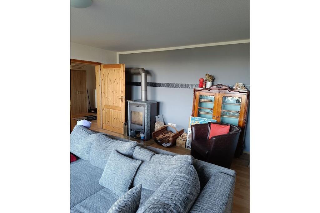 Aus den großen Panorama- Fenstern des Wohnzimmers hat man die erste tolle Aussicht auf Wandermöglichkeiten, die zu Fuß erreichbar sind. Diese gemütliche Ferienwohnung mit 85m² Wohnfläche, mit 2 Schlafzimmern und 1 grossem Wohnzimmer (Schlafmöglichkeiten für 5 Personen), Speisebereich für 6 Personen und einem Bad mit Dusche, das man im Herbst und Winter neben der normalen und zentralen Heiz-Öl-Heizung mit einem Kamin (Holz /Kohle ) im Wohnzimmer)beheizen kann, ist eine exellente Wohlfühloase. Während Ihres Urlaubs kann diese Ferienwohnung Ihr Zuhause sein. Sie wohnen in einer 75m² großen Ferienwohnung innerhalb eines 2- Familien - Hauses, in der neben einem großen Wohnzimmer mit TV und Kamin sowie mit 2 Schlafzimmern, einem Bad mit Dusche ein seperater Essbereich mit 6 Plätzen zum Essen neben dem Küchenbereich angeboten wird. Ein Extra-Lesezimmer oder Spielzimmer innerhalb dieser Ferienwohnung bietet dem Urlauber die Möglichkeit, sich innerhalb der Ferienwohnung zum lesen oder Sinieren oder zum trinken eines guten Tropfens zurückzuziehen.