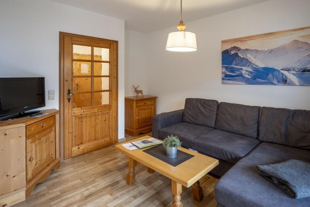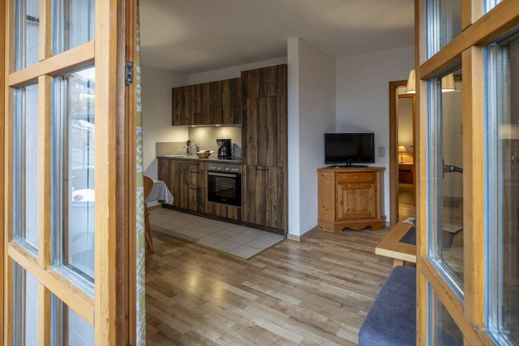 Ferielejligheden Zahmer Kaiser har et nyt køkken, en kombineret stue/soveværelse (med sovesofa), et nyt soveværelse i massivt træ med en dobbeltseng (komfort/allergivenlig sengetøj i hotelkvalitet), et lyst badeværelse med vindue, en praktisk entré, en stor terrasse og en rummelig balkon. Det åbne køkken/opholdsområde tilbyder rigelig plads til en familie på fire. En barneseng og højstol kan lejes gratis efter anmodning. Bygningen tilbyder også en sauna (mod gebyr), et bordtennisrum, et skiopbevaringsrum og, nyt i den tilstødende partnerbygning, en aflåselig cykelgarage med en ladestation til elcykler og en vaskemaskine/tørretumbler til gæster (mod gebyr). Vi udlejer også fire ekstra ferielejligheder i Landhaus St. Markus.