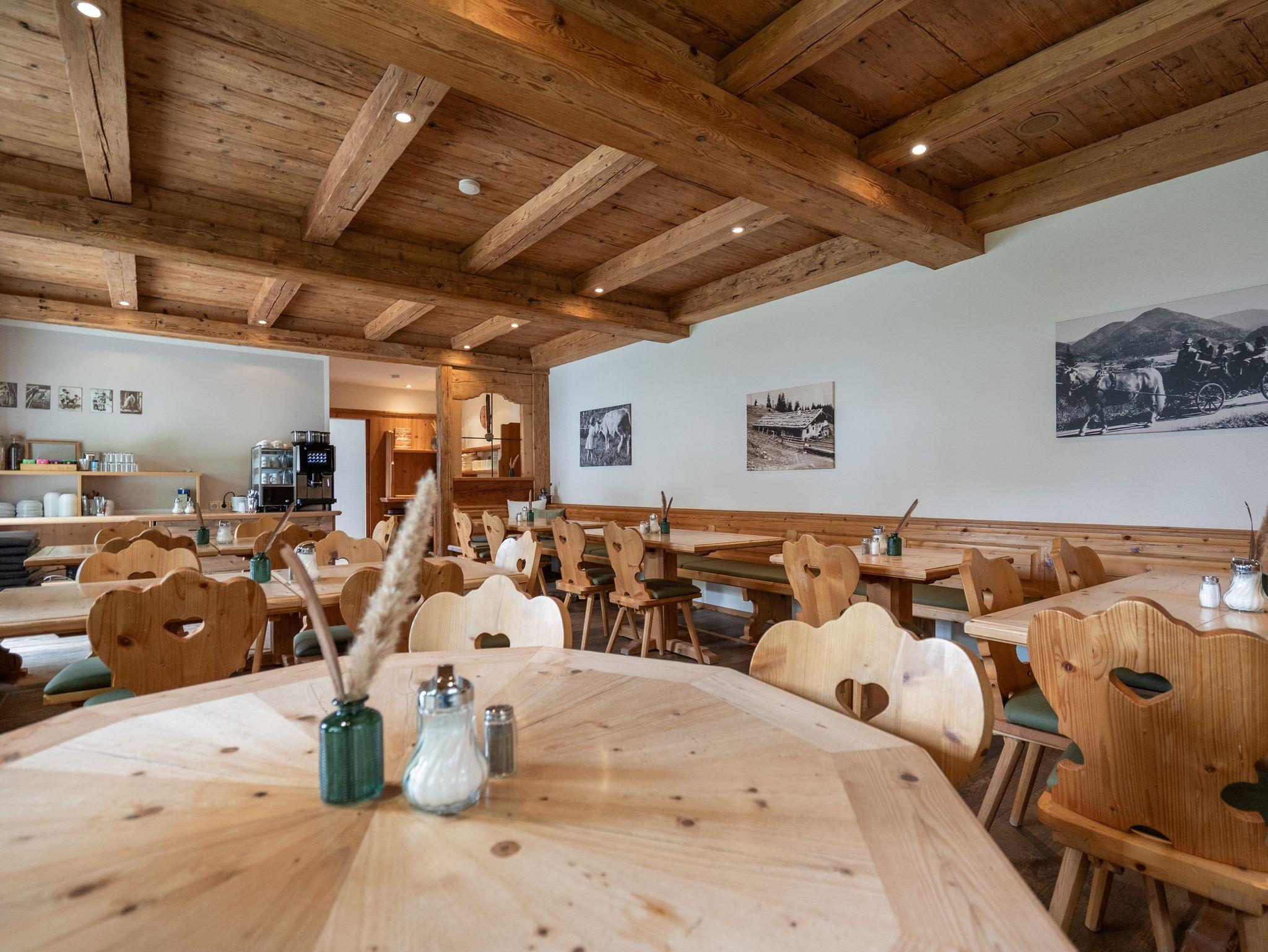 Der urig – rustikale Frühstücksraum bietet eine angenehme Atmosphäre für einen guten Start in den neuen Urlaubstag. Unser vitales Frühstücksbuffet ist reichhaltig und abwechslungsreich gestaltet. Bei schönem Wetter kann das Frühstück auch auf der Sonnenterasse eingenommen werden. Von dort aus hat man einen schönen Ausblick in die Bergwelt von Reit im Winkl und Umgebung.