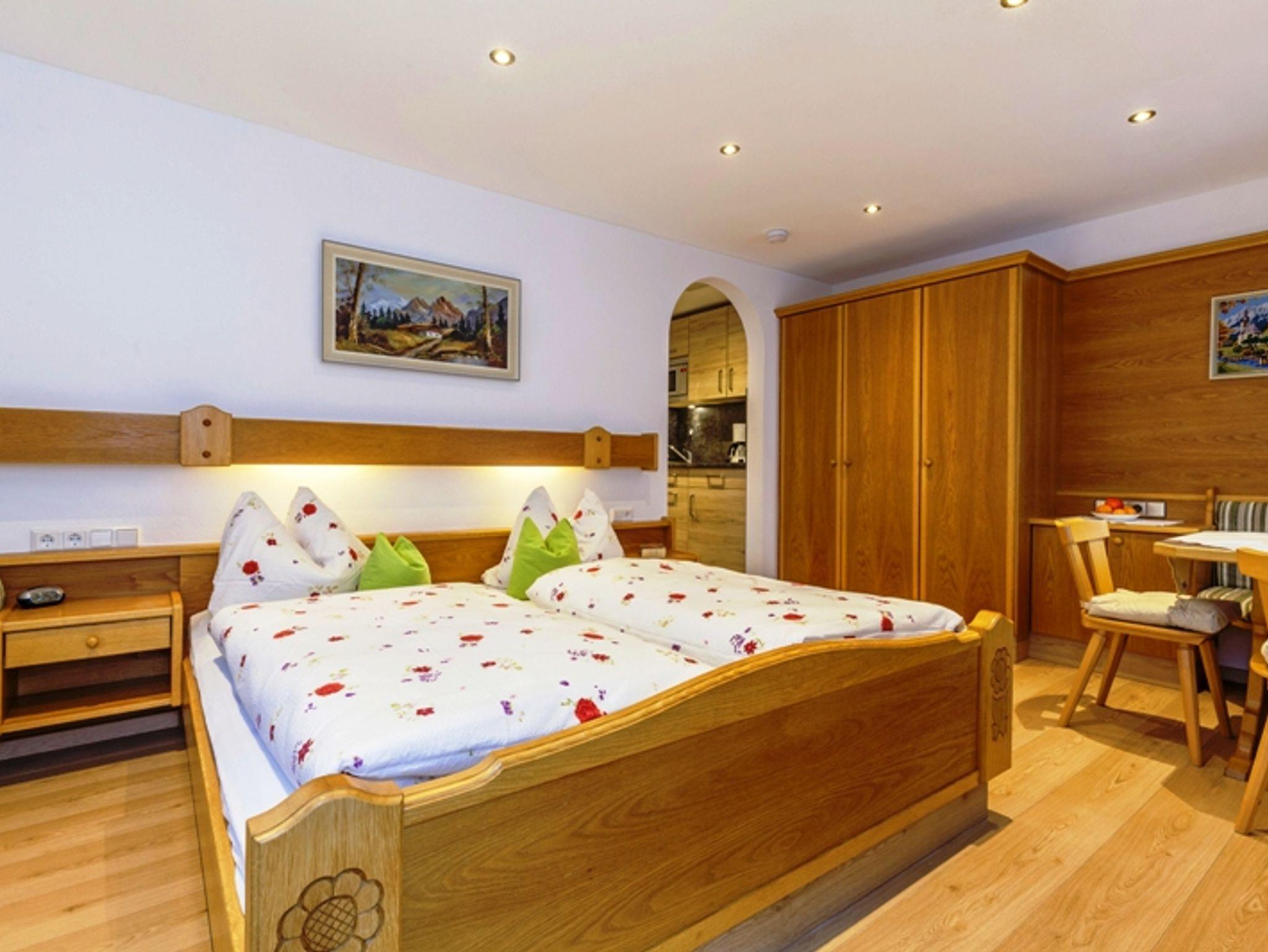 Bei dieser Ein-Raumwohnung haben Sie auf dem großzügigen Balkon Sonne vom frühen Morgen bis in den Abend. Der Wohnschlafraum ist mit einem Doppelbett ausgestattet. In der Küche stehen ihnen noch ein Wasserkocher, Kaffeemaschine, Toaster und ein Eierkocher zur Verfügung.