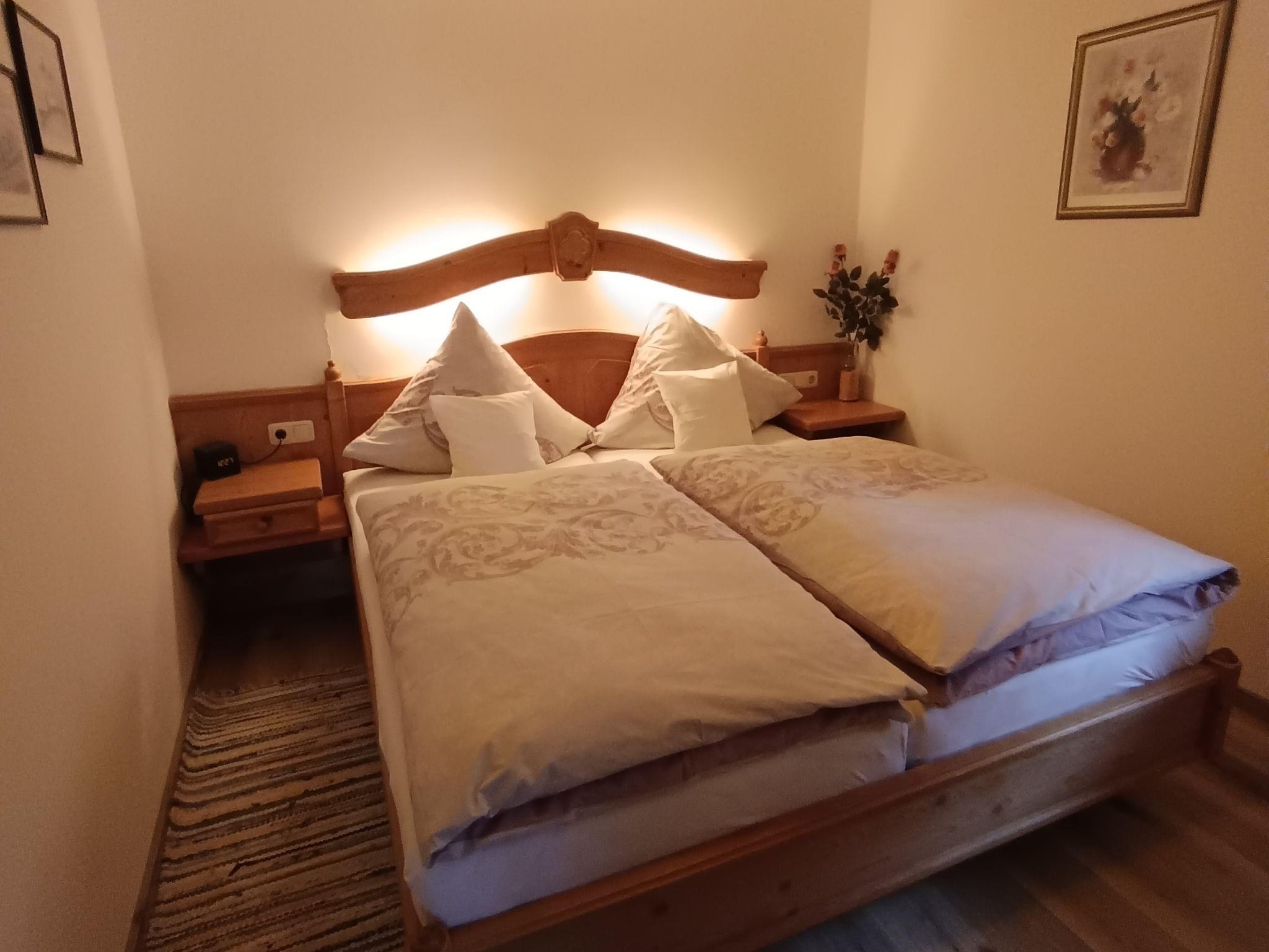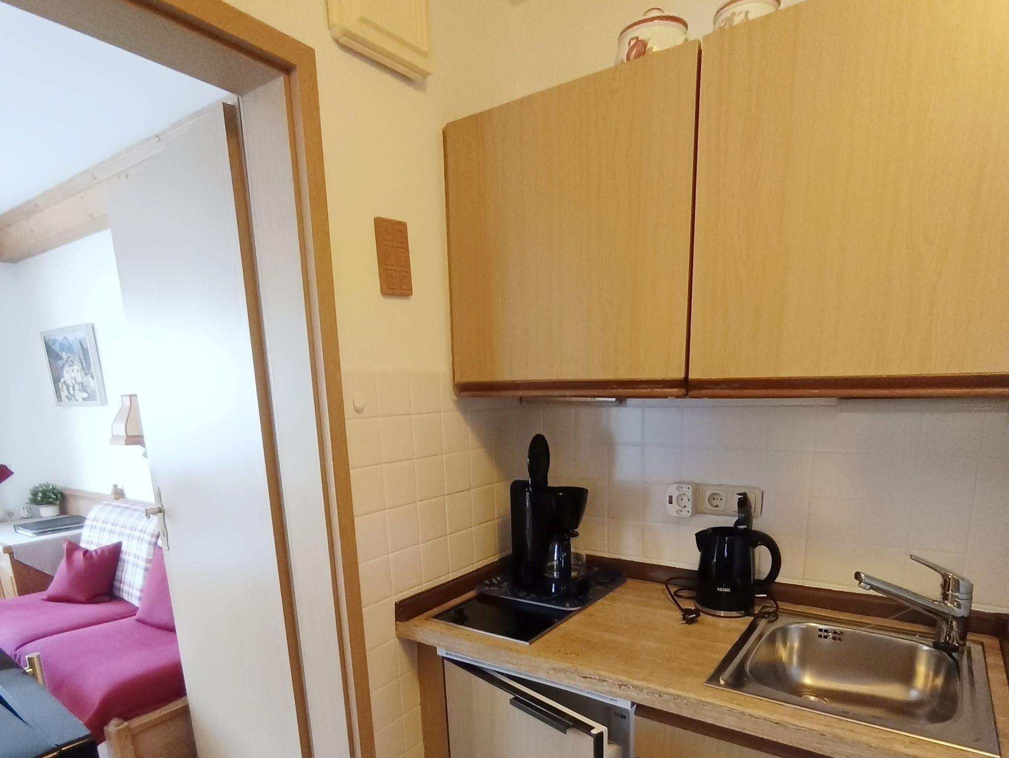 Liebevoll eingerichtetes Zweiraumappartement, Wohnraum mit kleinem Erker, separater kuscheliger Schlafraum, extra Küchenzeile, heller Duschraum mit WC, sowie Südbalkon mit Blick auf die umliegende Bergwelt.