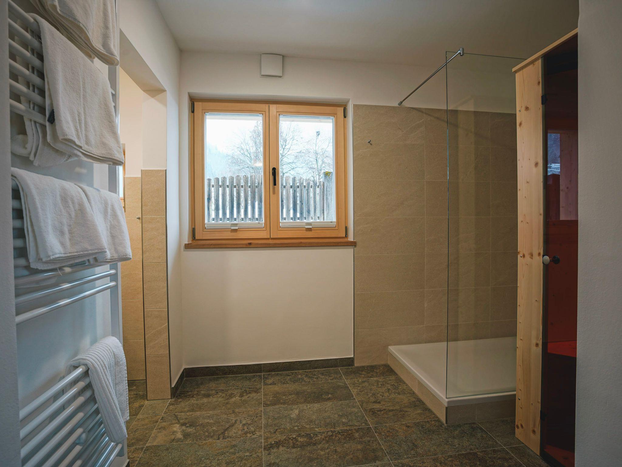 Im großen Badezimmer befindet sich eine Infrarotkabine der Fa. Physiotherm GmbH. Es steht Ihnen ein Kühlschrank sowie Geschirr und Besteck für kleine Brotzeiten zur Verfügung.
