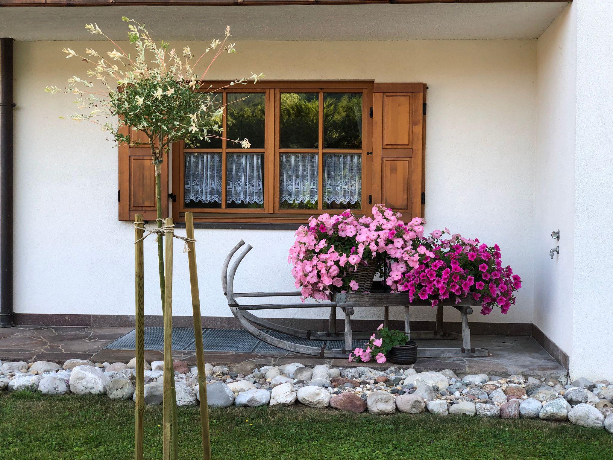 Ferienwohnung Bergveilchen • Für 2 Personen • 43 m² • eigene Terrasse & Gartenzugang • Alpenblick • Barrierefrei • Tiefgarage