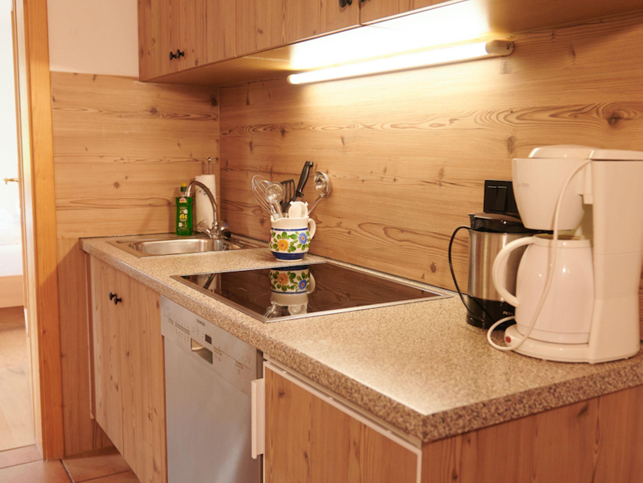 • Gut ausgestattete Küchenzeile im Flur mit 4-Platten Cerankochfeld, Spülmaschine