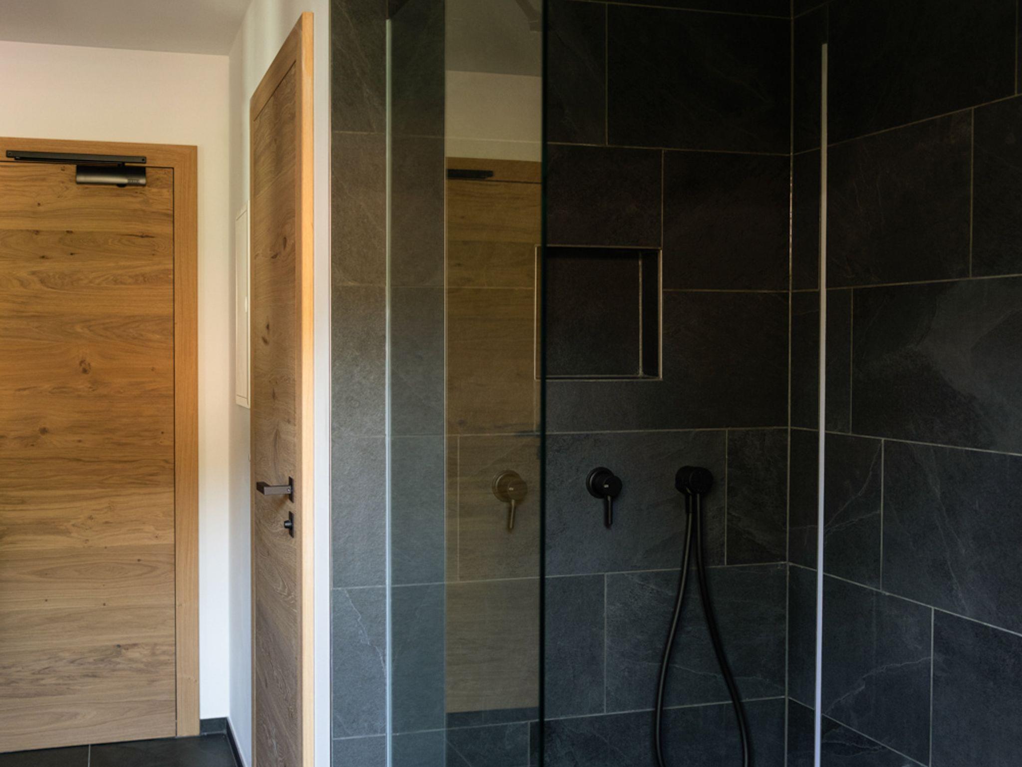 Ebenerdige Regendusche mit Waschtisch und separatem WC