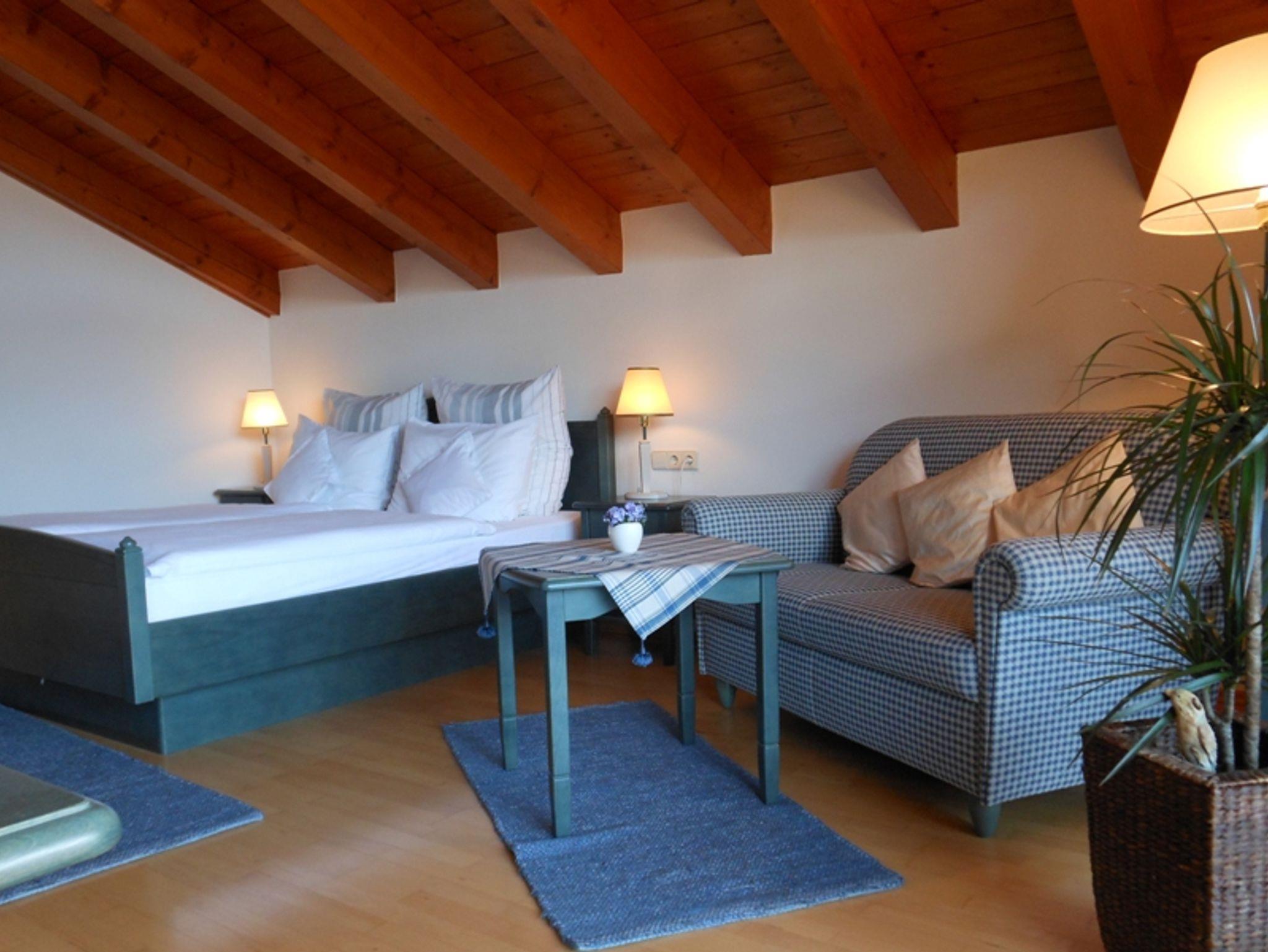 Diese für bis zu zwei Personen geeignete 1-Zimmer-Studiowohnung ist mit einem großzügigen Wohn-/Schlafraum mit Sitzecke, Bad mit Dusche und WC, Esstisch und ebenfalls mit einem im Sommer möblierten Balkon ausgestattet. Auch die separate Küche ist komplett ausgestattet mit Kühlschrank, Mikrowelle, Eierkocher, Kaffeemaschine, Toaster und einer 2-Platten-Kochstelle. WLAN vorhanden. Für Ihren Pkw steht selbstverständlich ein Stellplatz und für ihre Skiausrüstung ein Platz in der Hausgarage zur Verfügung. Im Keller befinden sich die Abtropfwannen für ihre Skischuhe.