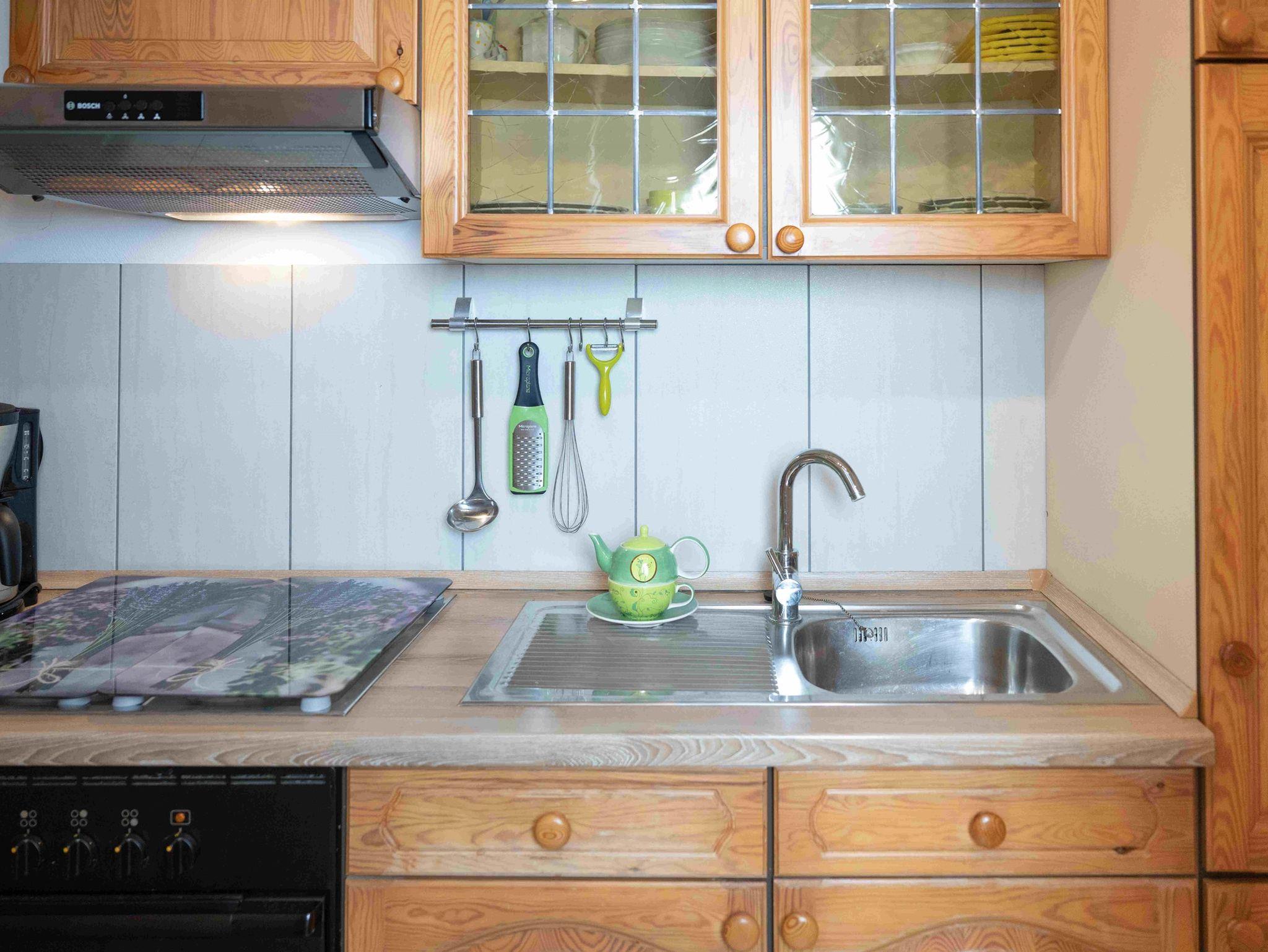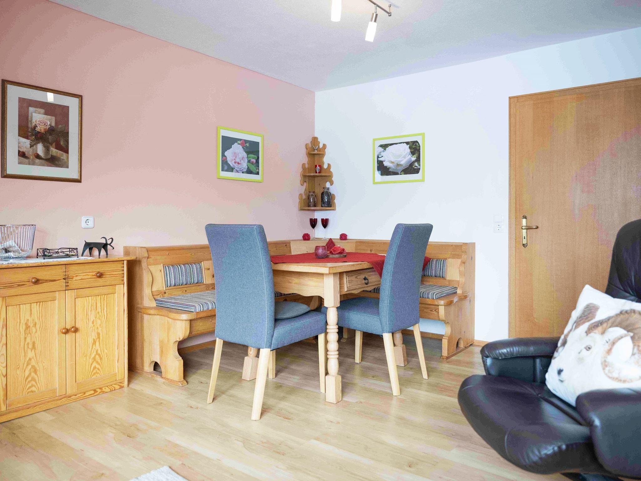 Die Ferienwohnung besitzt eine voll eingerichtete Küche, Dusche und WC, einen Wohnraum mit Fernseher. Die Wohnung hat 2 Balkone und einen seperaten Schlafraum. Die Wohnung hat freien Bergblick und ist eine Nichtraucherwohnung.