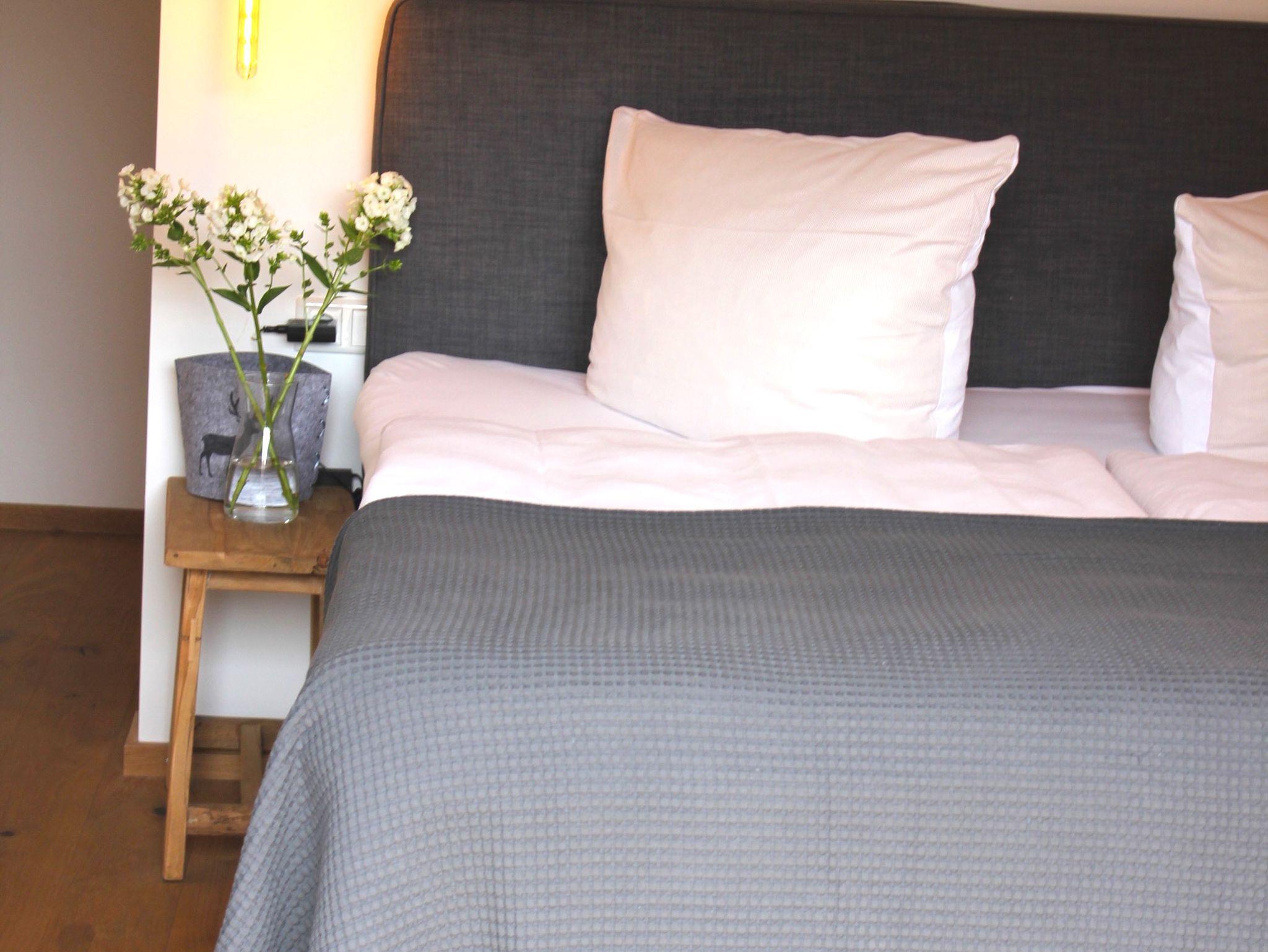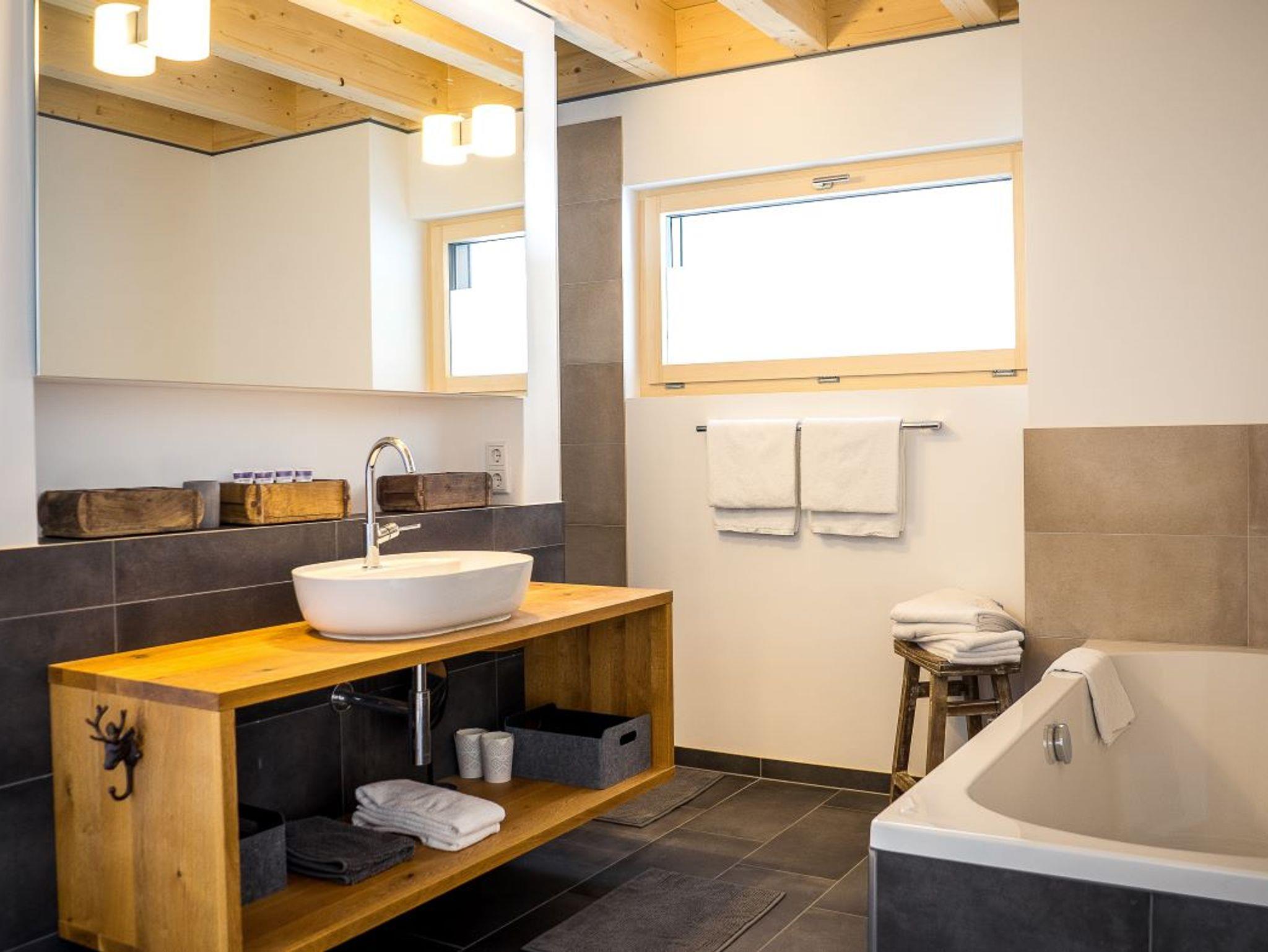 Die nahe dem Zentrum von Reit im Winkl gelegene, moderne und doch gemütliche Doppelhaushälfte Villa Wanderlust bietet höchsten Komfort auf 130 m² für bis zu sechs Personen. Genießen Sie den großartigen Ausblick auf die umliegende Bergwelt vom geräumigen Balkon aus, welcher mit einem Esstisch und Stühlen ausgestattet ist. Die Villa Wanderlust verfügt insgesamt über drei Schlafzimmer, sowie zwei Bäder. Alle Wohn- und Schlafräume sind mit Fußbodenheizung und Eichenparkett ausgestattet. Im Erdgeschoss befinden sich neben der Eingangsdiele zwei mit großen Doppelbetten ausgestattete Schlafzimmer, welche direkten Zugang zur Terrasse und dem Garten bieten, sowie ein luxuriöses Bad mit ebenerdiger Regendusche und Badewanne. Für Kinder stehen zudem ein Reisebett und ein Hochstuhl bereit. Im Obergeschoss beeindruckt vor allem ein offenes Wohnkonzept, sowie eine große Raumhöhe. Die Küche verfügt über eine Kochinsel und hochwertige Elektrogeräte wie Kühlschrank, Gefrierschrank, Induktionsherd, Backofen, Geschirrspüler, Kaffeemaschine und Nespressomaschine sowie Koch- und Backutensilien. Im Wohnraum laden ein großer Esstisch und eine bequeme Sitzecke mit Sofa, Sesseln und TV (inkl. Kabel, Sat, Netflix, Bose Radio) zu gemütlichen und gemeinschaftlichen Abenden ein. Hier finden Sie auch das dritte Schlafzimmer mit Doppelbett sowie ein weiteres Badezimmer. Der Keller ist mit einer hauseigenen Sauna inklusive Dusche und Ruheliegen ausgestattet und bietet damit Entspannung pur. Hier steht Ihnen außerdem eine Waschmaschine und ein Trockner zur Benutzung. Im Außenbereich sind Liegestühle und eine Feuerschale, sowie ein Stellplatz für Ihr Auto vorhanden. Der malerische Ortskern von Reit im Winkl ist in nur wenigen Minuten zu Fuß bequem erreichbar. Einige der besten Restaurants und Cafés, sowie eine Vielzahl an Geschäften laden zu einem gemütlichen Ortsbummel ein. Auch Wanderer kommen hier auf ihre Kosten, denn viele der Wege starten direkt im Zentrum. WLAN und freier Eintritt ins Freibad sind einige der Vorteile bei uns. Die Villa Wanderlust ist ein Biohaus von Baufritz ®. Alle Baumaterialien sind baubiologisch geprüft und schadstofffrei. Bei der Einrichtung wurde auf Nachhaltigkeit geachtet. Die Küche besteht aus 100% recycelten Materialien. Viele Kunst- und Designelemente sorgen für eine hohe Wohnqualität.