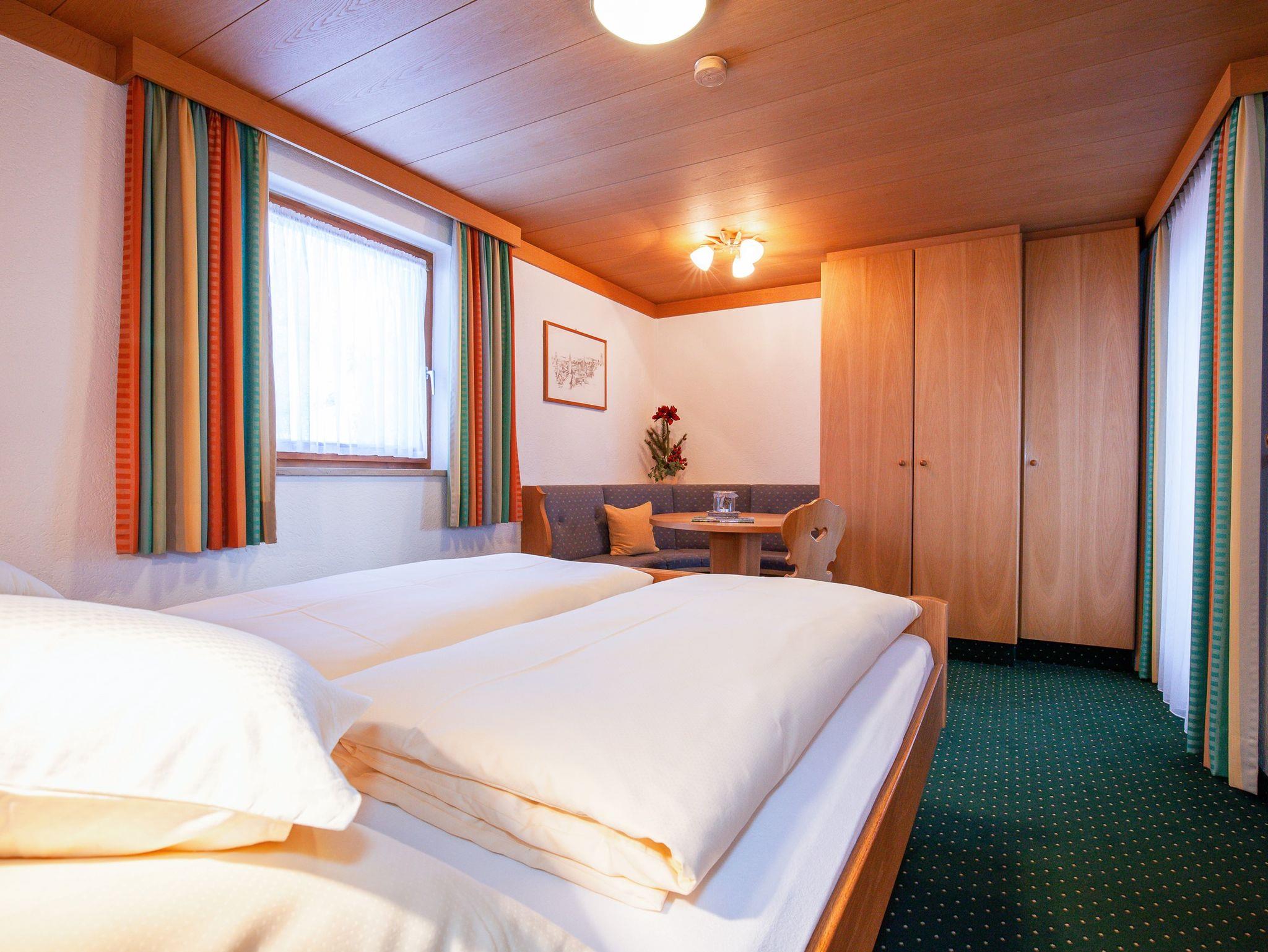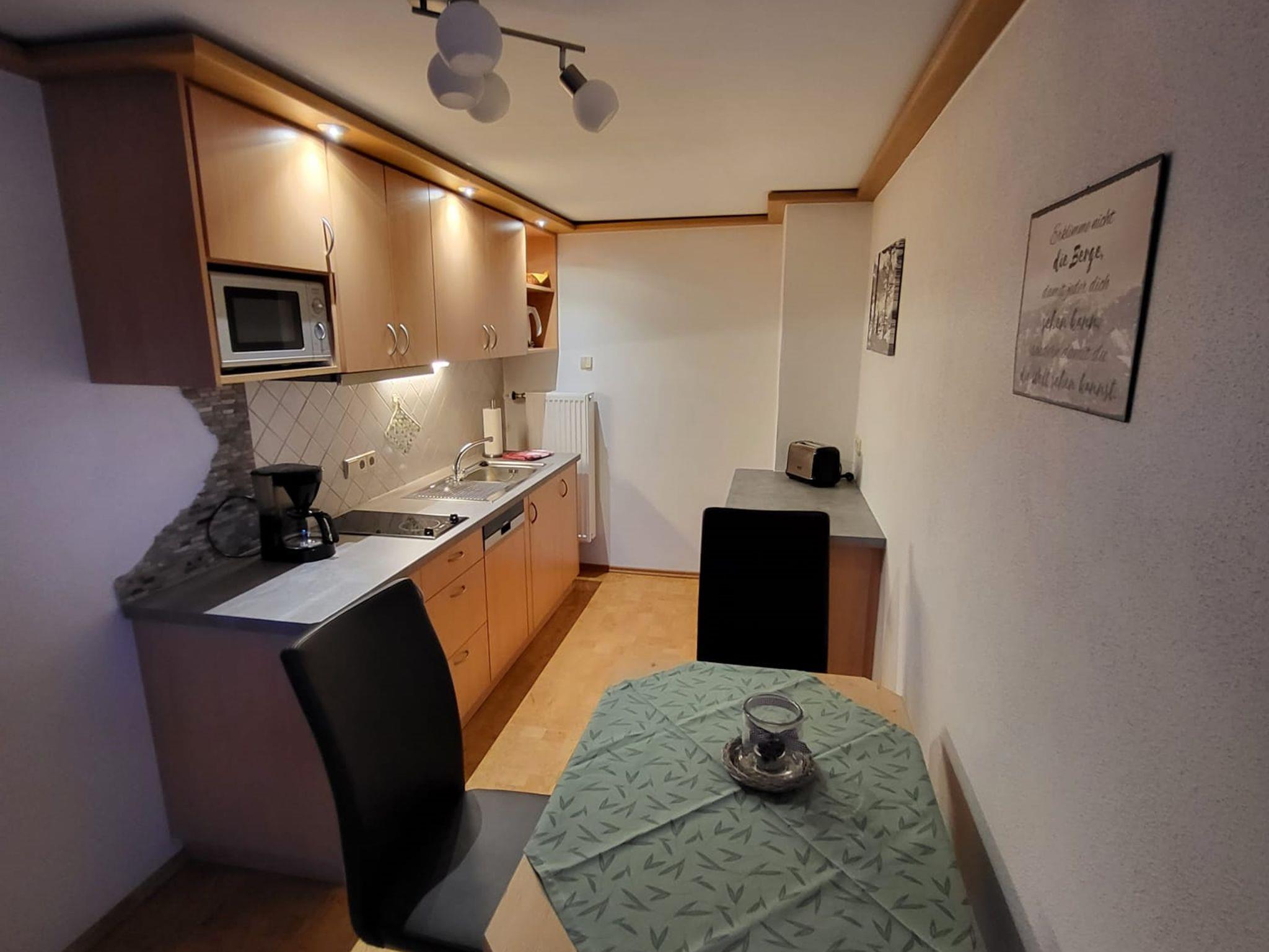 Die gemütliche und liebevoll eingerichtete Zweiraumwohnung wurde mit hochwertigen Einbaumöbeln ausgestattet und verfügt über einen großen möblierten Westbalkon mit Blick auf das Kaisergebirge. Wohnraum mit Sitzgruppe, komfortable Schlafcouch zum Ausziehen, Flachbild-TV, Radio und kostenloser Internetzugang. Für Ihre Wertgegenstände steht Ihnen ein Zimmersafe zur Verfügung. Schlafzimmer mit Doppelbett (verstellbare Lattenroste, Bandscheibenmatratzen), großer Kleiderschrank, ebenfalls mit Flachbild-TV und Ostbalkon mit Morgensonne. Das angrenzende Bad mit DU/WC wurde neu saniert und verfügt über ein Fenster. Die gemütliche Wohnküche mit Essecke ist komplett eingerichtet mit Mikrowelle, Kaffeemaschine, Toaster, Wasserkocher u. Spülmaschine etc. Die Betten sind bereits bezogen, Handtücher werden gestellt und auf Wunsch gewechselt.