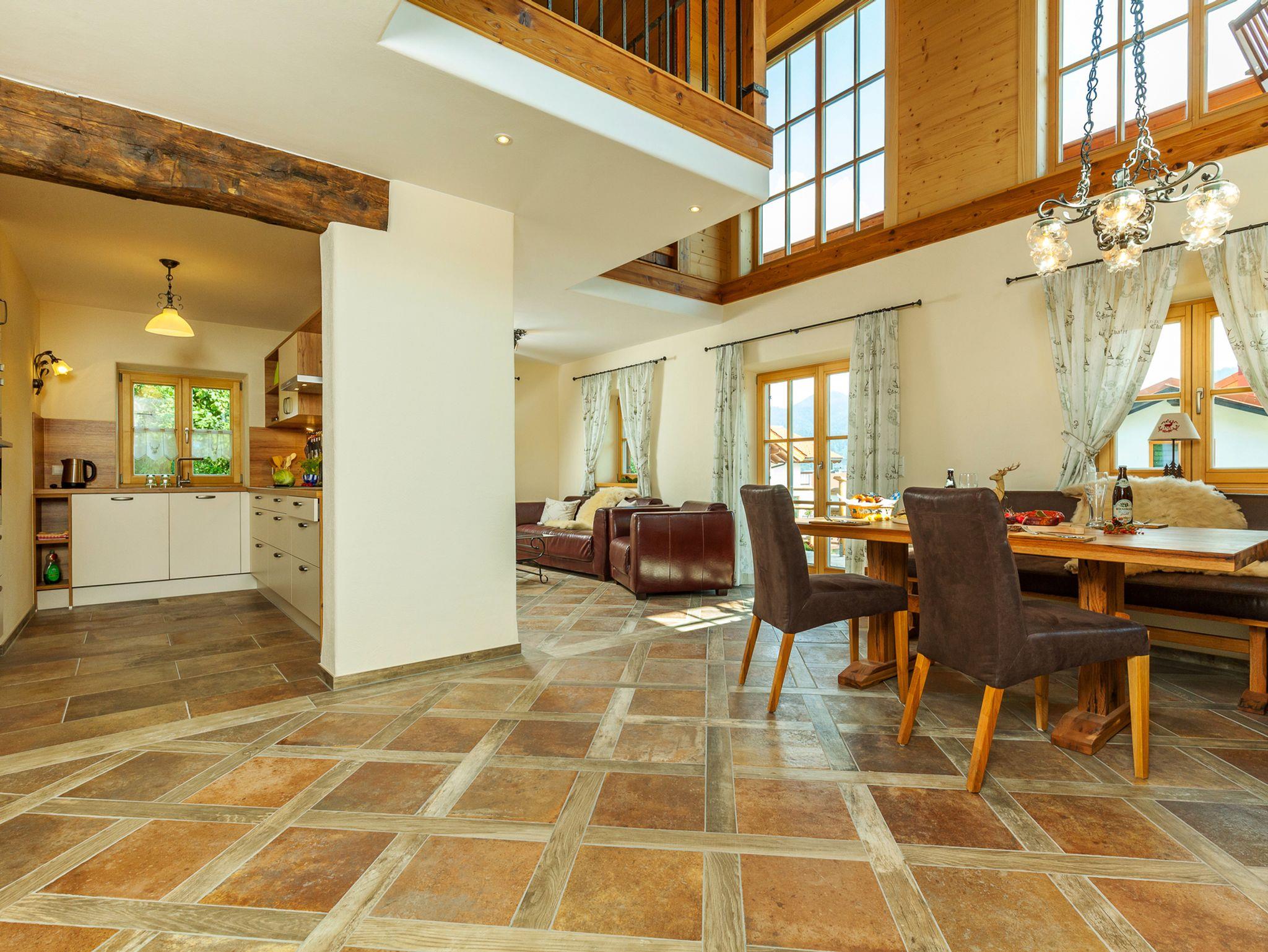Unser „Chalet unter weiß-blauem Himmel“ ist ein luxuriöses Ferienhaus für bis zu 8 Personen. Das 2018 erbaute Haus ist von einem großen Garten umgeben, mit Liegewiese, Terrasse, Grillecke und Freisitz aus Naturstein, angrenzend an einen kleinen Gebirgsbach. In mehreren gemütlichen Sitz-Bereichen sowohl im Erdgeschoss als auch im Obergeschoss können Sie in einem bayrisch traditionellem aber doch zeitgemäßen Ambiente entspannen. Vom Balkon blicken Sie auf die grandiose Berglandschaft sowie das Kaisergebirge und das Unterberghorn, zur weiteren Ausstattung gehören Fußbodenheizung (Naturwärme aus Reit im Winkl) und Wlan. Ein Schlafzimmer befindet sich im Erdgeschoss, zwei weitere im Obergeschoss, alle in unterschiedlichem klarem Design mit verschiedenen Holzarten; zu jedem gehört ein angrenzendes Badezimmer. Auch unser Wellnessbereich ist ein Hingucker: vier speziell entworfene Physiothermliegen sorgen in einer Wald-und-Alm-Atmosphäre dafür, dass Verspannungen und Rückenschmerzen gelindert und das allgemeine Wohlbefinden gestärkt werden. Praktisch für Ihren Winterurlaub sind Skischuh-Trockner, Platz für die Ski-Ausrüstung und die Winterkleidung. Außerdem stellen wir unseren Gästen Waschmaschine, Wärmepumpentrockner und einen Carport für zwei Fahrzeuge zur Verfügung.