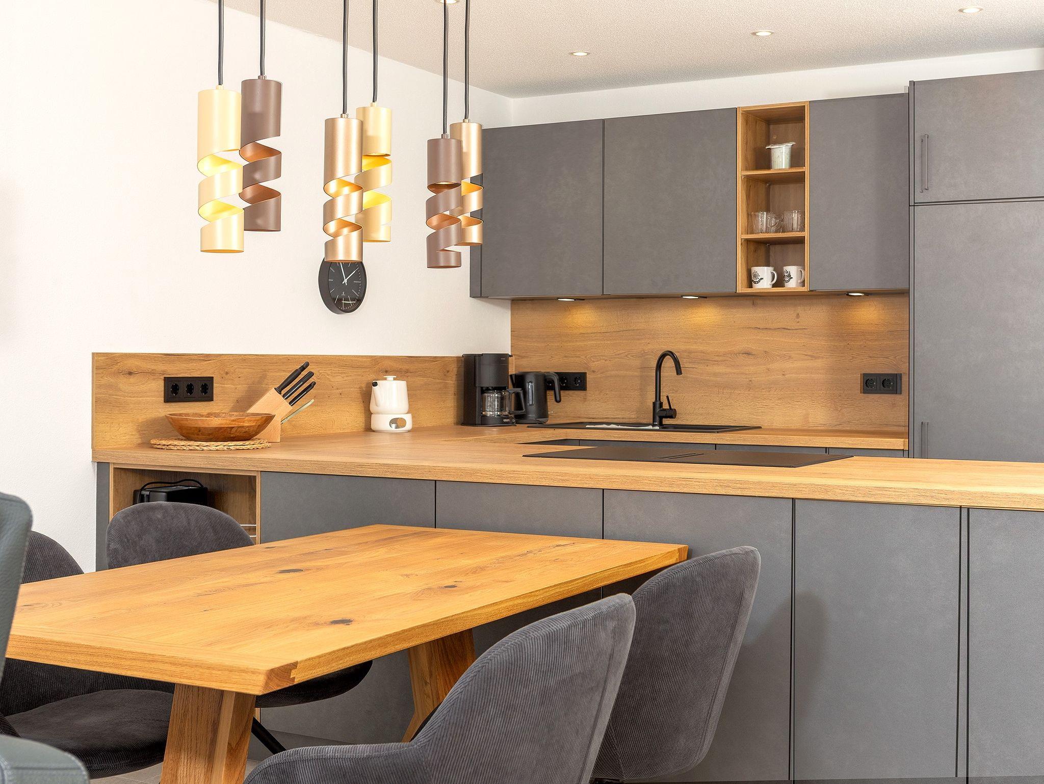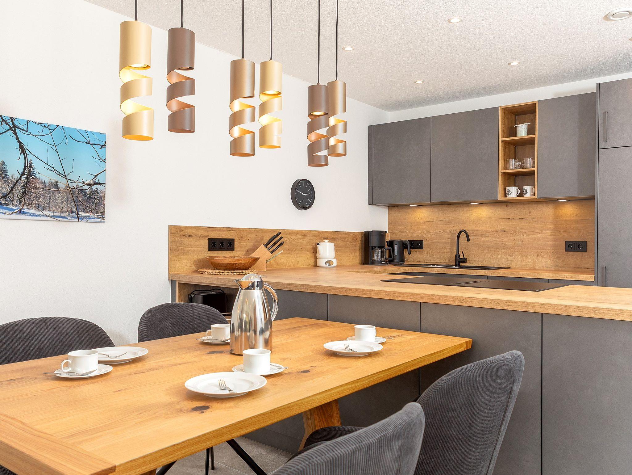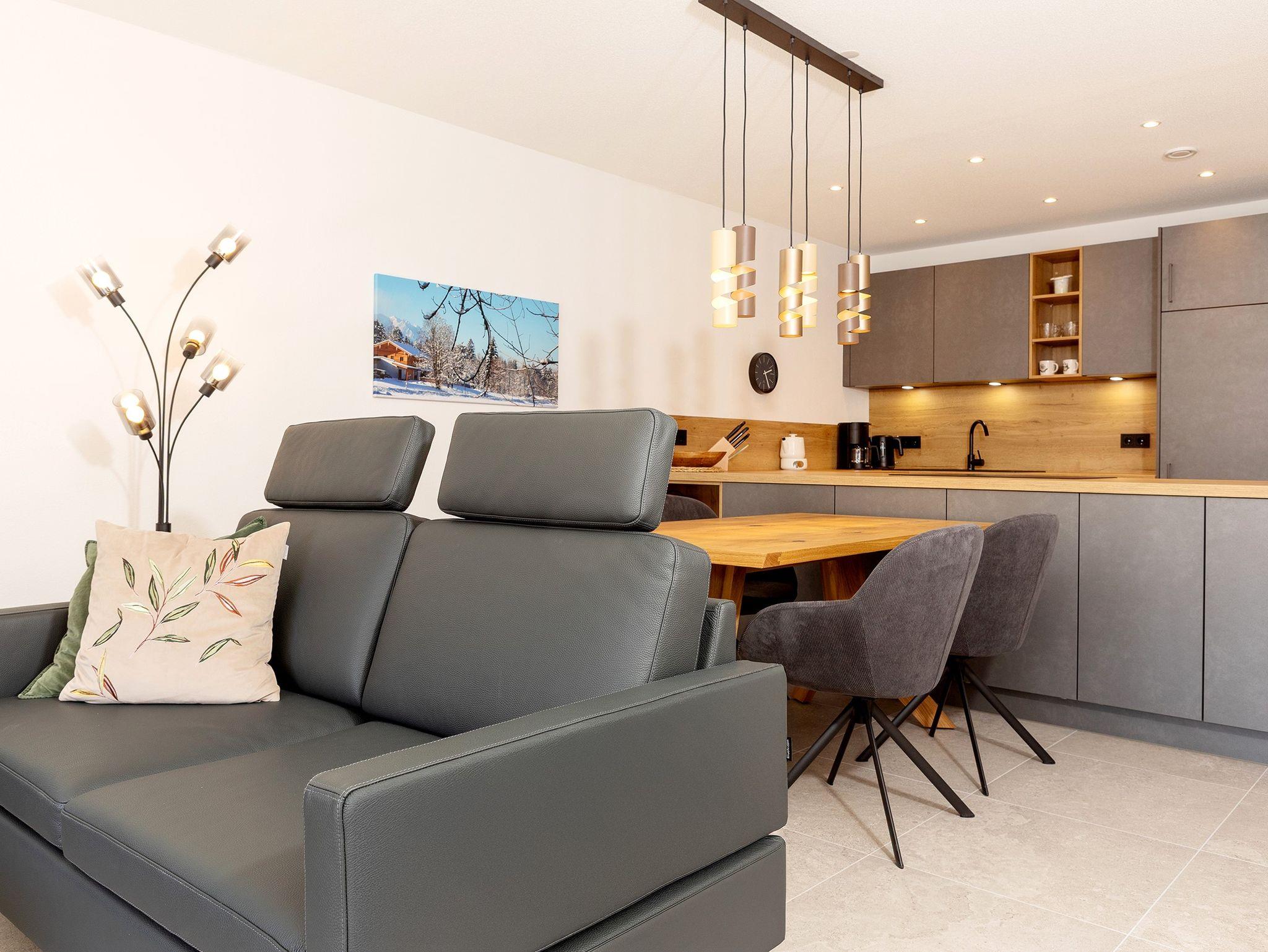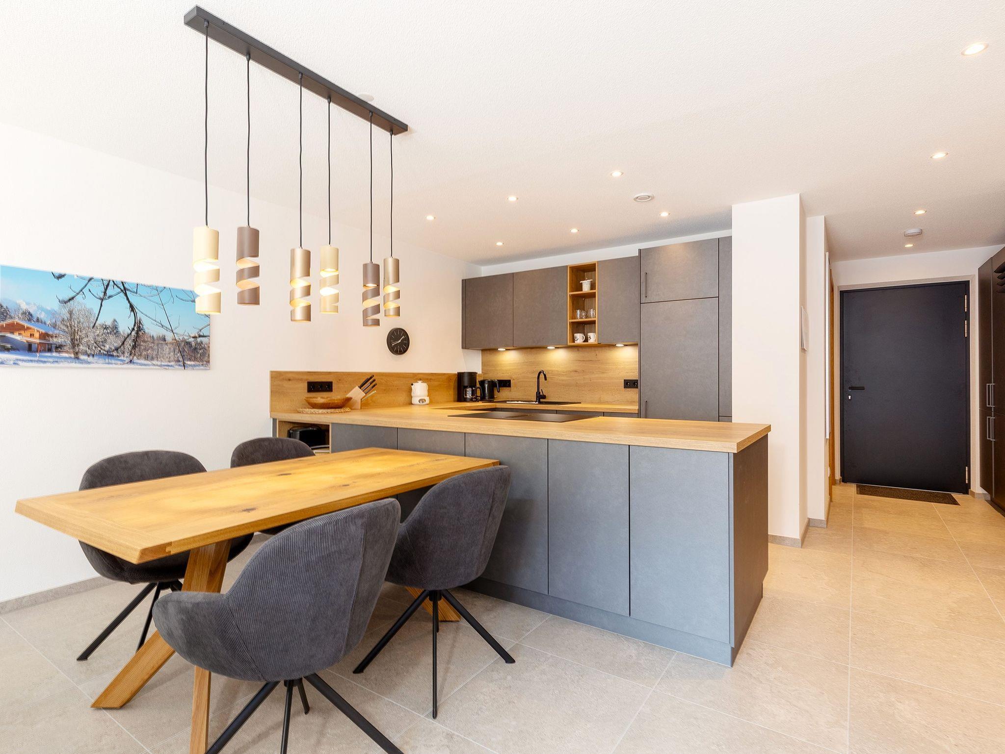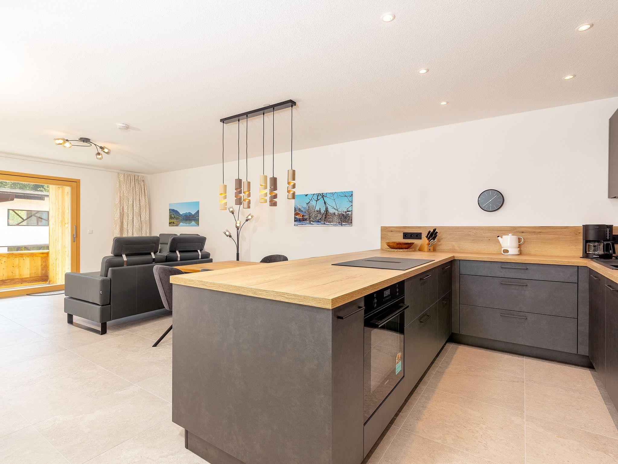 Die voll ausgestattete Küche mit Induktionsherd und Kochfeldabzug macht das Kochen zum Vergnügen. Zusätzliche Annehmlichkeiten wie Fußbodenheizung, ebenerdige Duschen, Tiefgaragenstellplatz, Aufzug, Skikeller und Fahrradraum garantieren Komfort auf höchstem Niveau. Die Wohnung ist liebevoll eingerichtet und sorgt u.a. mit lokalen eigenen Naturmotiven für Urlaubsstimmung.